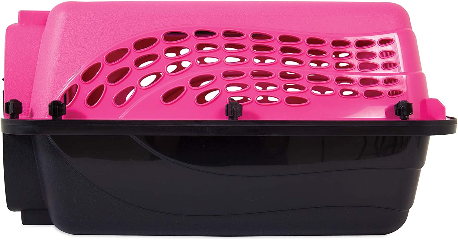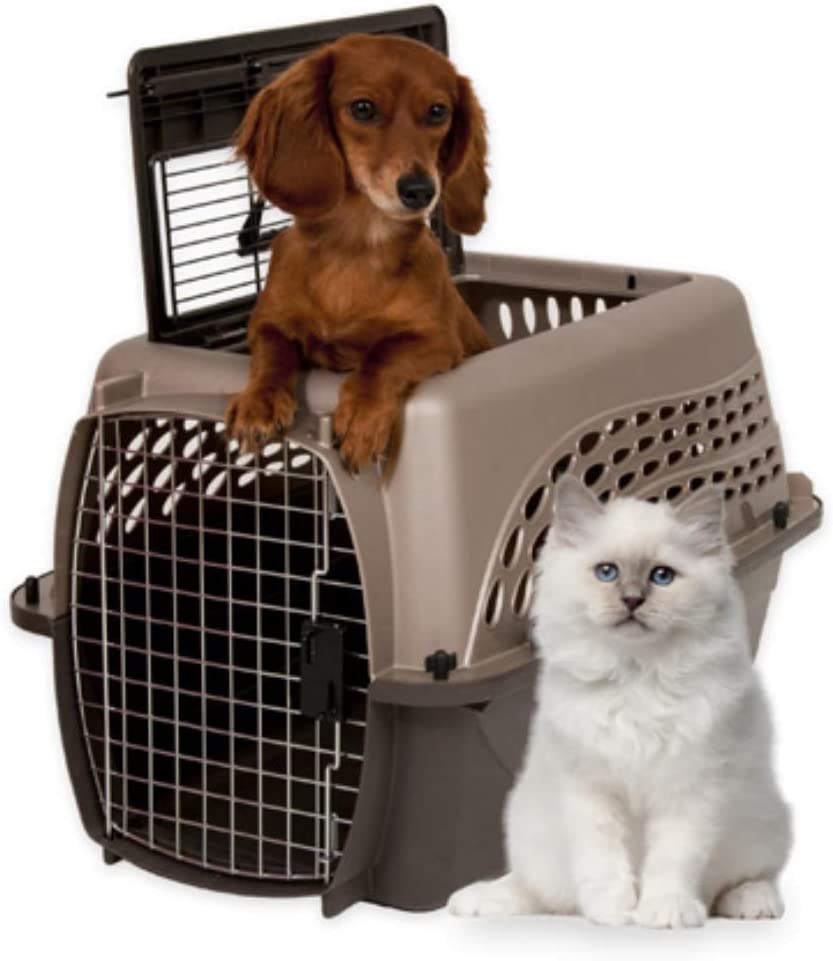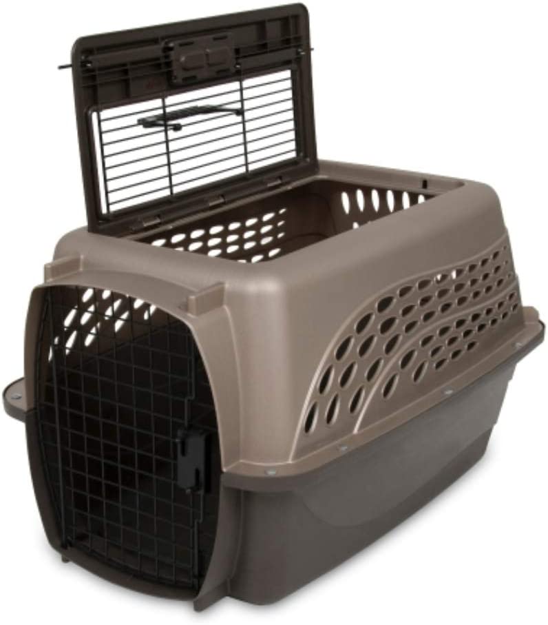 Petmate's Two-Door Top Load kennel makes for less stressful travel. These dog carriers for small dogs are recommended by veterinarians. The unique top-loading door allows a more natural entry way for your dog or cat, reducing stress and scratching during the loading process. Pet parents can easily place and remove pet from the carrier with both hands. Sturdy enough for airline travel, both front and top-load doors are constructed with steel, and feature easy-squeeze latches for convenient access. Your cat or dog will enjoy 360 degree visibility and the flow of fresh air circulation. No need to stick them in a cat backpack carrier, pet backpack , dog cage. or cat cage. These dog crates are constructed from recycled materials. Comes with a built-in, foldable handle and the sturdy plastic shell is easy to clean. Also features "stay dry" moat that surrounds interior floor space in case of wet accidents. The spacious kennel bottom can accommodate a kennel pad for added cushion. Deigned for comfort, these are great for house training as they satisfy a dog's natural "denning" instinct. Provides a safe place for your dog to feel secure. The kennel measures 24 inches long. We do offer this in a smaller size for small breed dog or toy breed dog. These are not just dog crates for small dogs, this works as a puppy carrier , cat crate or for a range of small pets from birds, ferrets, guinea pigs. See our guide to choosing the right carrier or pet crate in our images. Petmate makes a variety of pet products for dogs, cats, birds, and other furry friends. Check out our brands such as Aspen Pet, Arm & Hammer, Booda, Chuckit , Fat Cat, and more.