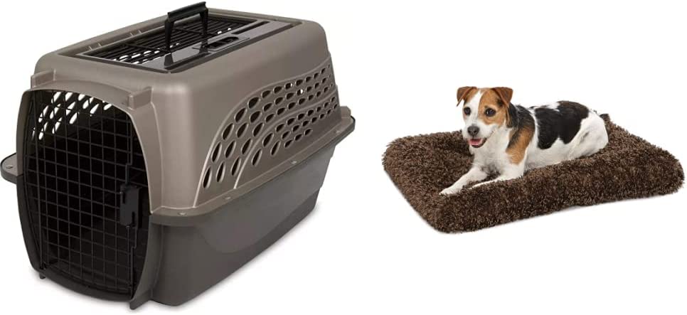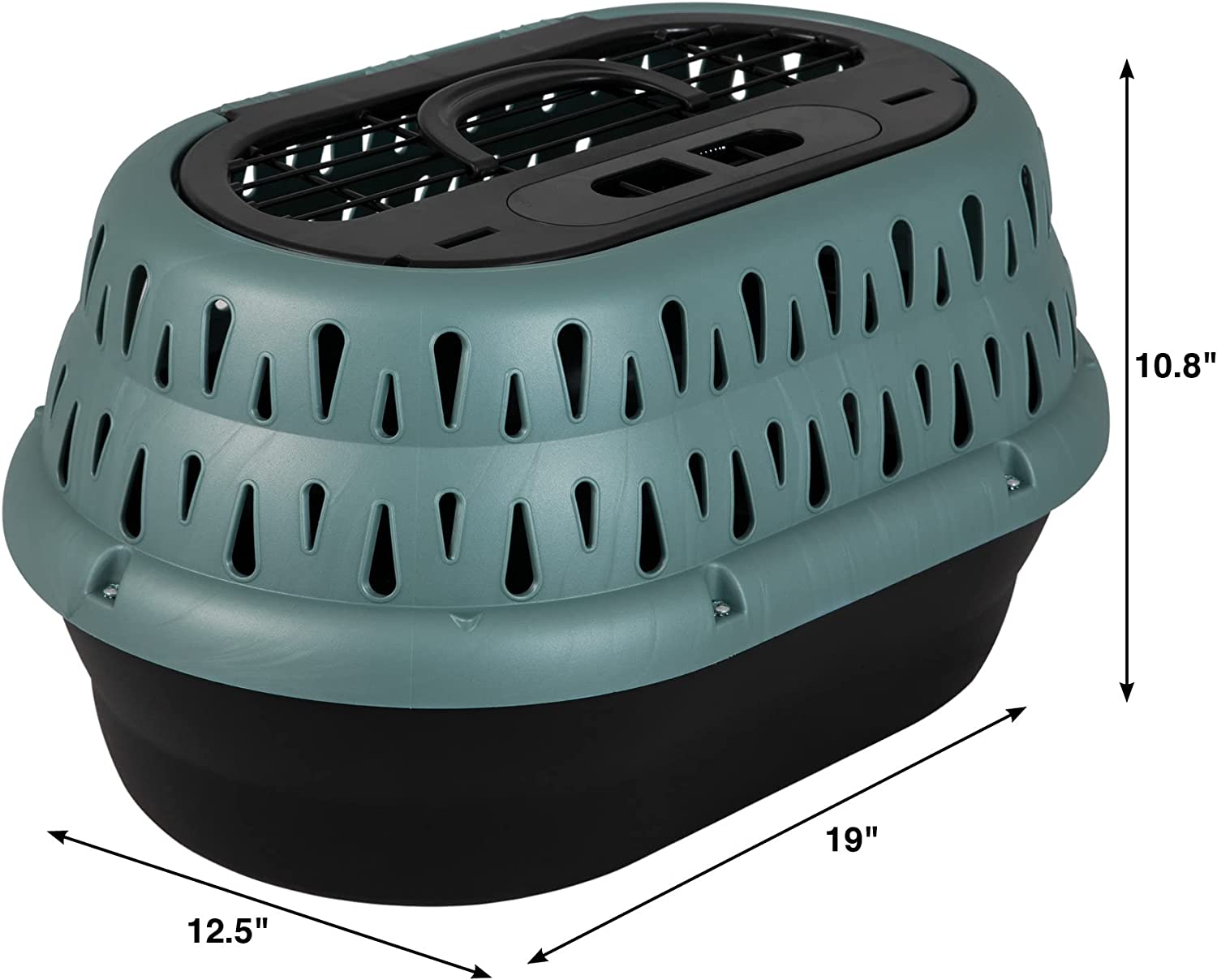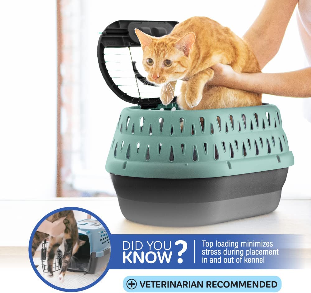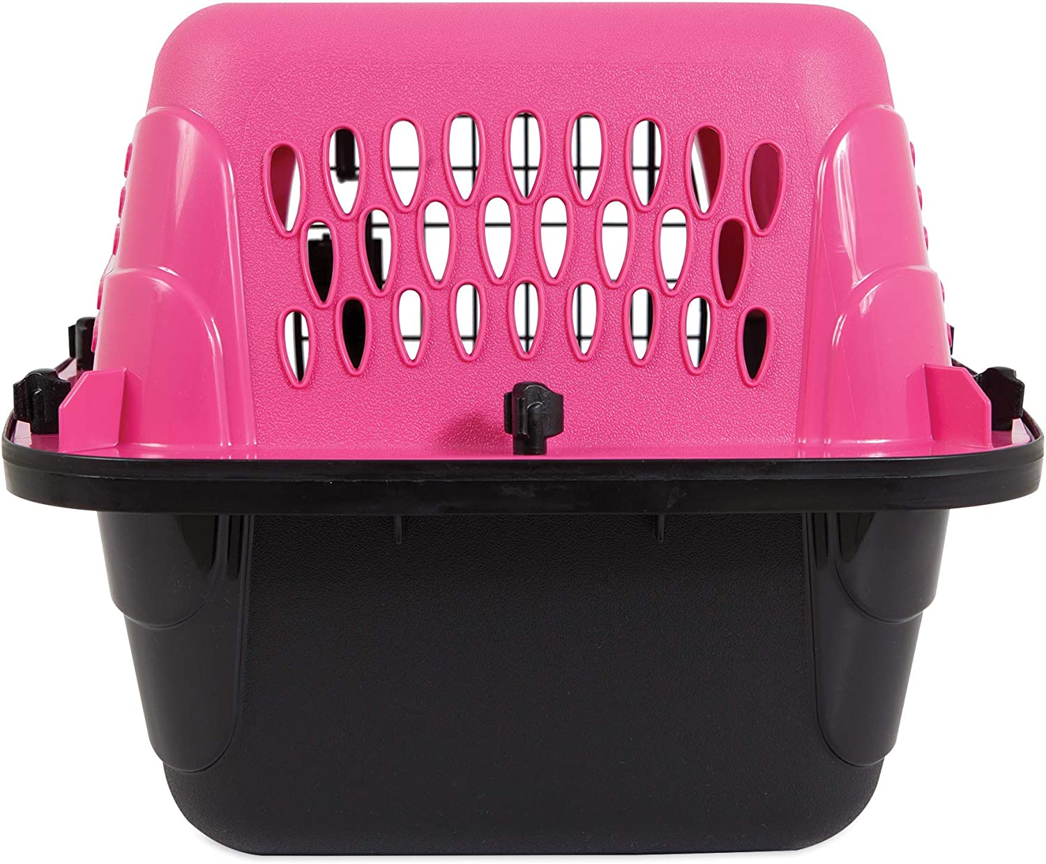 Petmate's Two-Door Top Load kennel makes for less stressful travel. These dog carriers for small dogs are recommended by veterinarians. The unique top-loading door allows a more natural entry way for your dog or cat, reducing stress and scratching during the loading process. Pet parents can easily place and remove pet from the carrier with both hands. Sturdy enough for airline travel, both front and top-load doors are constructed with steel, and feature easy-squeeze latches for convenient access. Your cat or dog will enjoy 360 degree visibility and the flow of fresh air circulation. No need to stick them in a cat backpack carrier, pet backpack , dog cage. or cat cage. These dog crates are constructed from recycled materials. Comes with a built-in, foldable handle and the sturdy plastic shell is easy to clean. Also features "stay dry" moat that surrounds interior floor space in case of wet accidents. The spacious kennel bottom can accommodate a kennel pad for added cushion. Deigned for comfort, these are great for house training as they satisfy a dog's natural "denning" instinct. Provides a safe place for your dog to feel secure. The kennel measures 24 inches long. We do offer this in a smaller size for small breed dog or toy breed dog. These are not just dog crates for small dogs, this works as a puppy carrier , cat crate or for a range of small pets from birds, ferrets, guinea pigs. See our guide to choosing the right carrier or pet crate in our images. Petmate makes a variety of pet products for dogs, cats, birds, and other furry friends. Check out our brands such as Aspen Pet, Arm & Hammer, Booda, Chuckit , Fat Cat, and more.