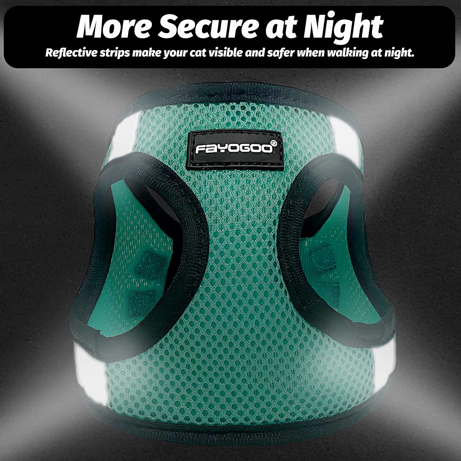 • EASY TO WEAR and SAFE AT NIGHT: Unlike other brands of harnesses that are troublesome to wear, your cat can put on FAYOGOO cat walking harness in just one step. Very easy and convenient. For additional, the reflective strip design of this large cat harness allows your cat walking safely at night.