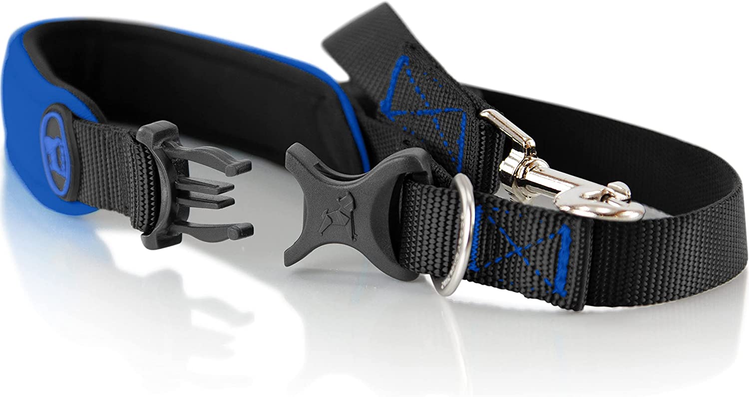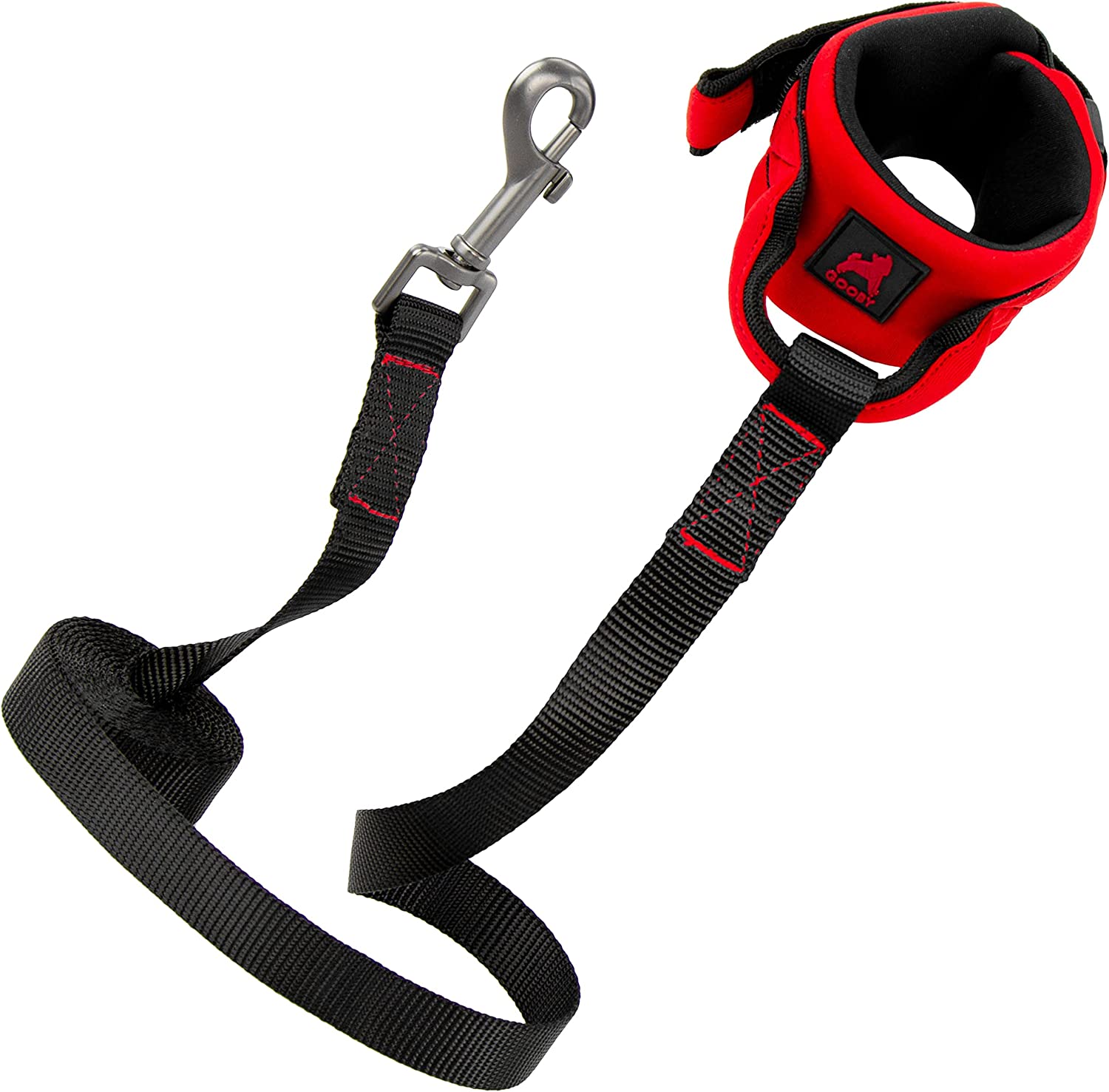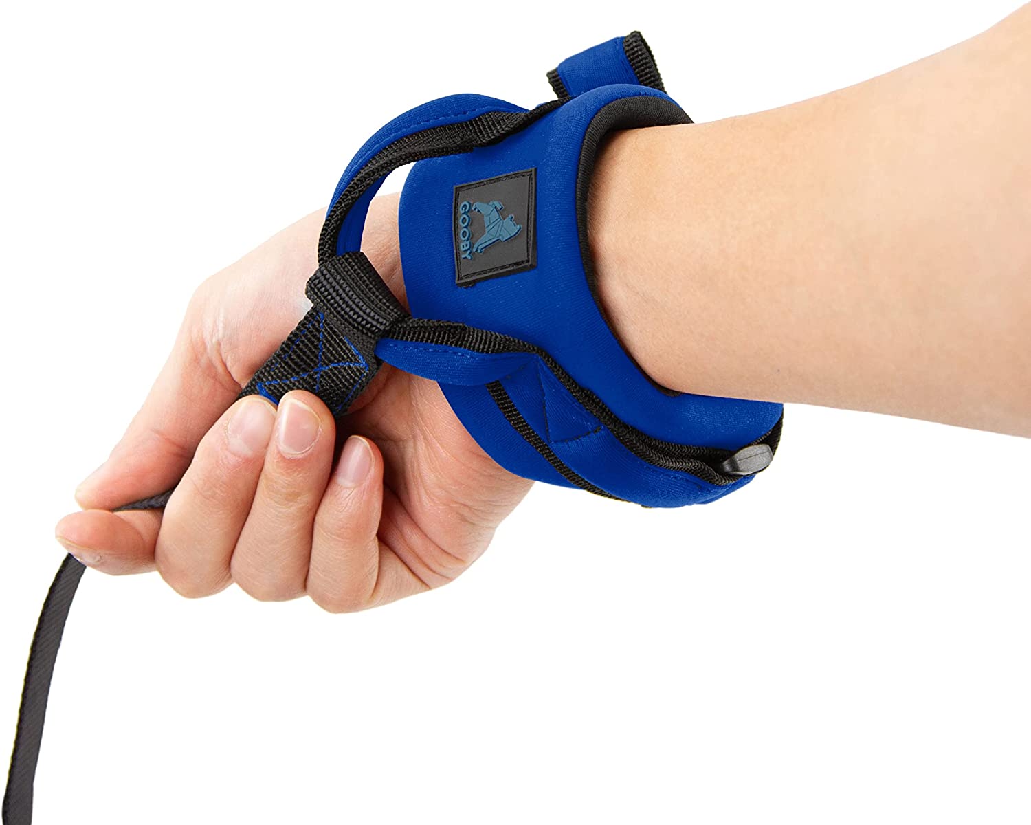 Gooby Neoprene Wrist Band Sport Leash - Blue, 6 FT - Comfortable Hands Free Leash with Elastic Band for Small, Medium and Large Dogs