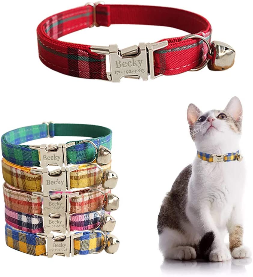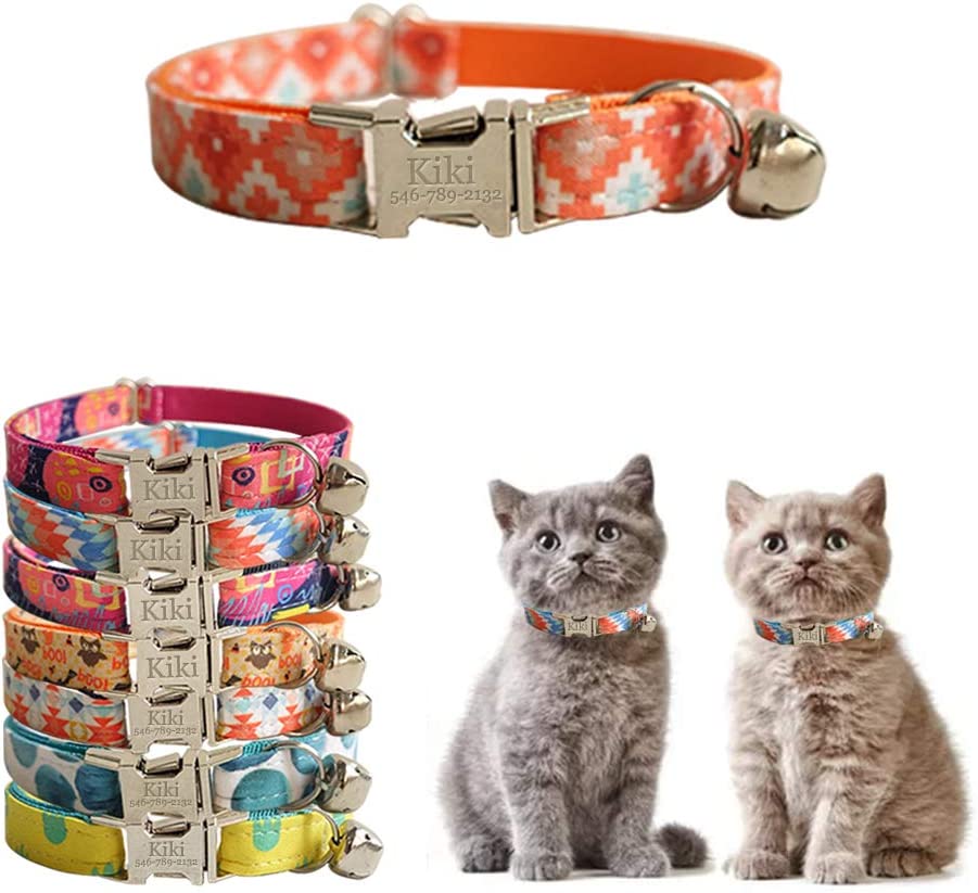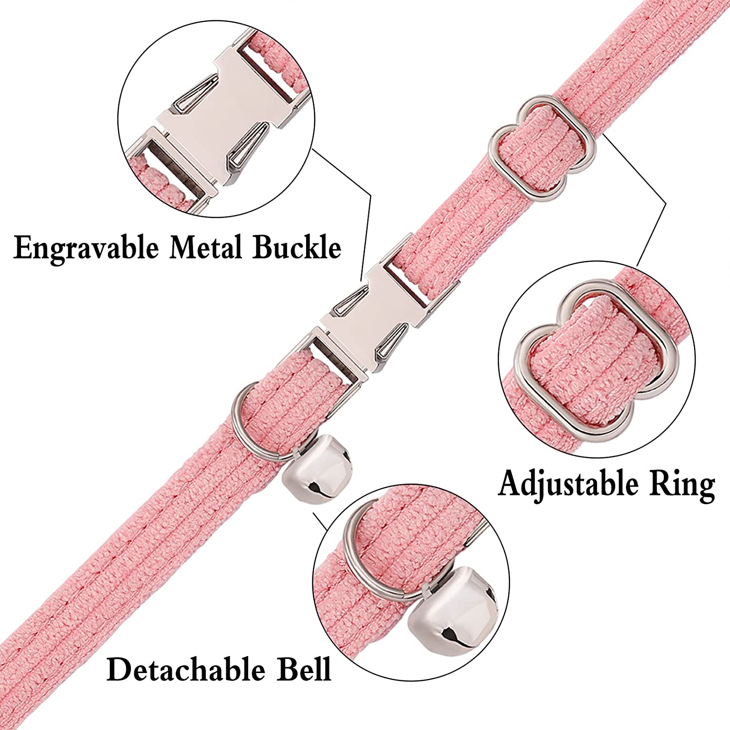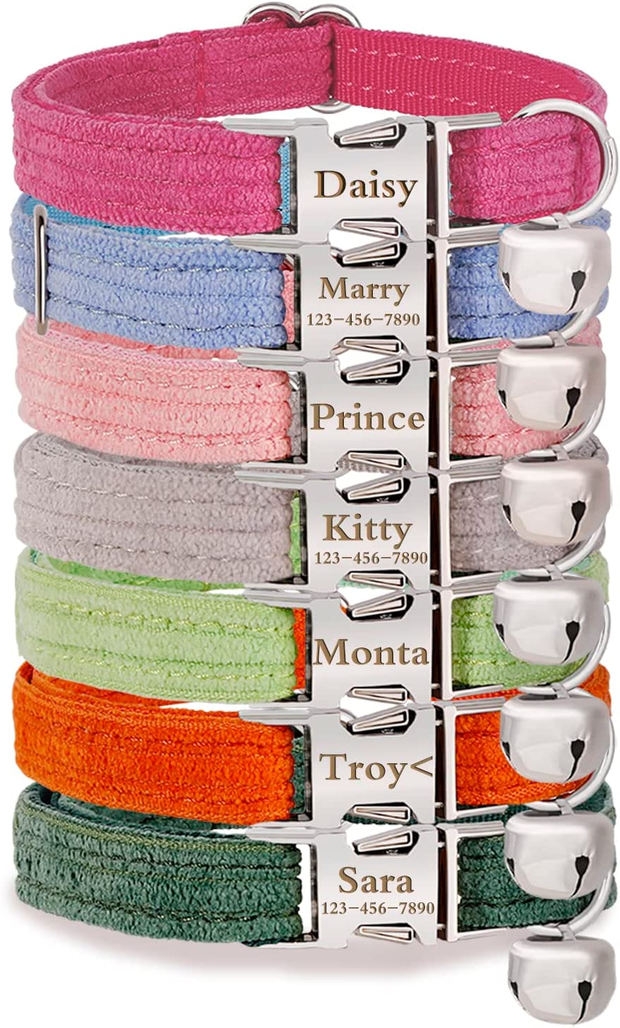 Personalized Cat Collar with Name Plate,Adjustable Tough Nylon Cat ID Collars with Bell,Customize Engraved Pet Name and Phone Number (Velvet Style B)
