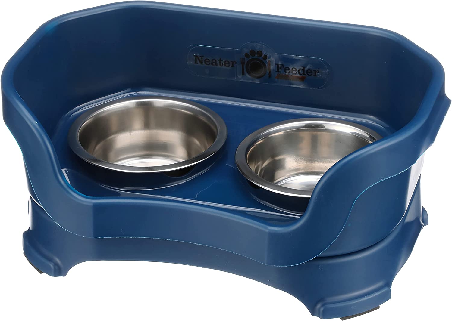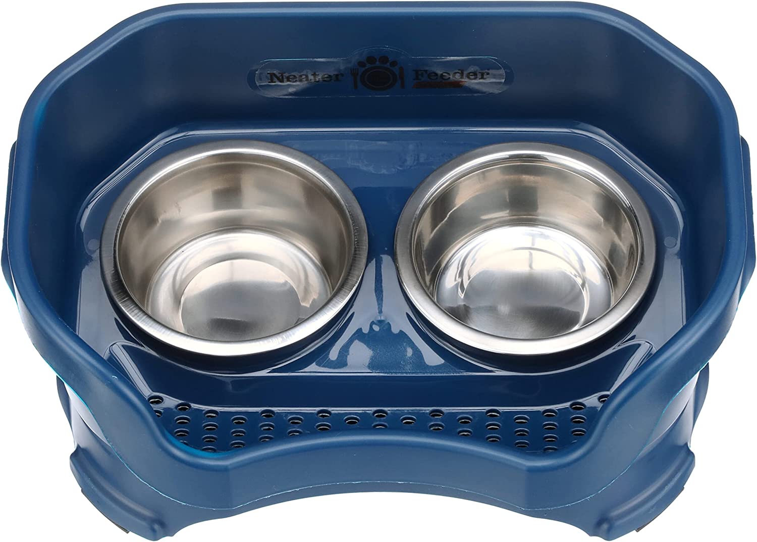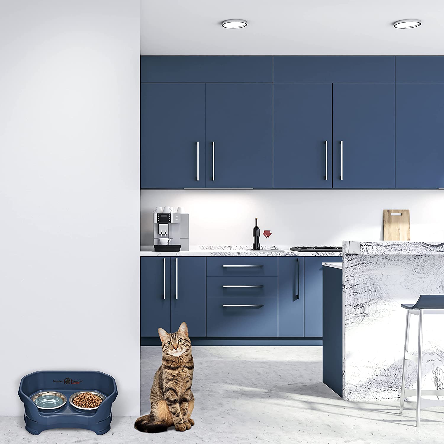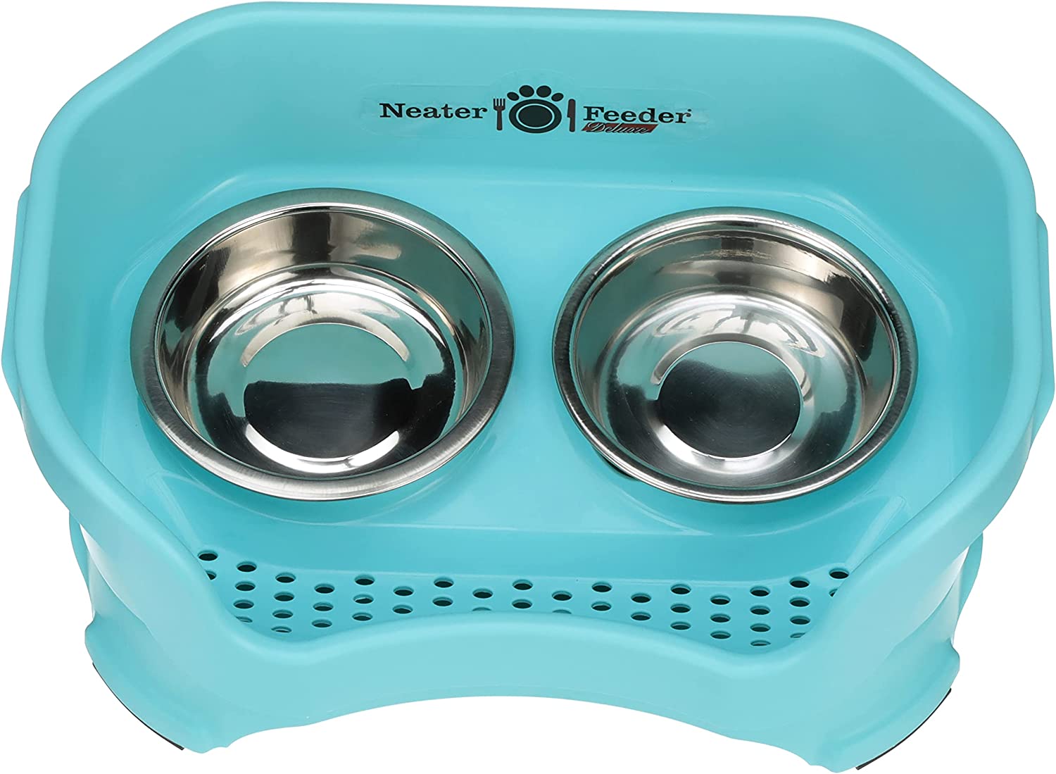 Neater Feeder Deluxe for Cats - Mess Proof Pet Feeder with Stainless Steel Food & Water Bowls - Drip Proof, Non-Tip, and Non-Slip - Aquamarine