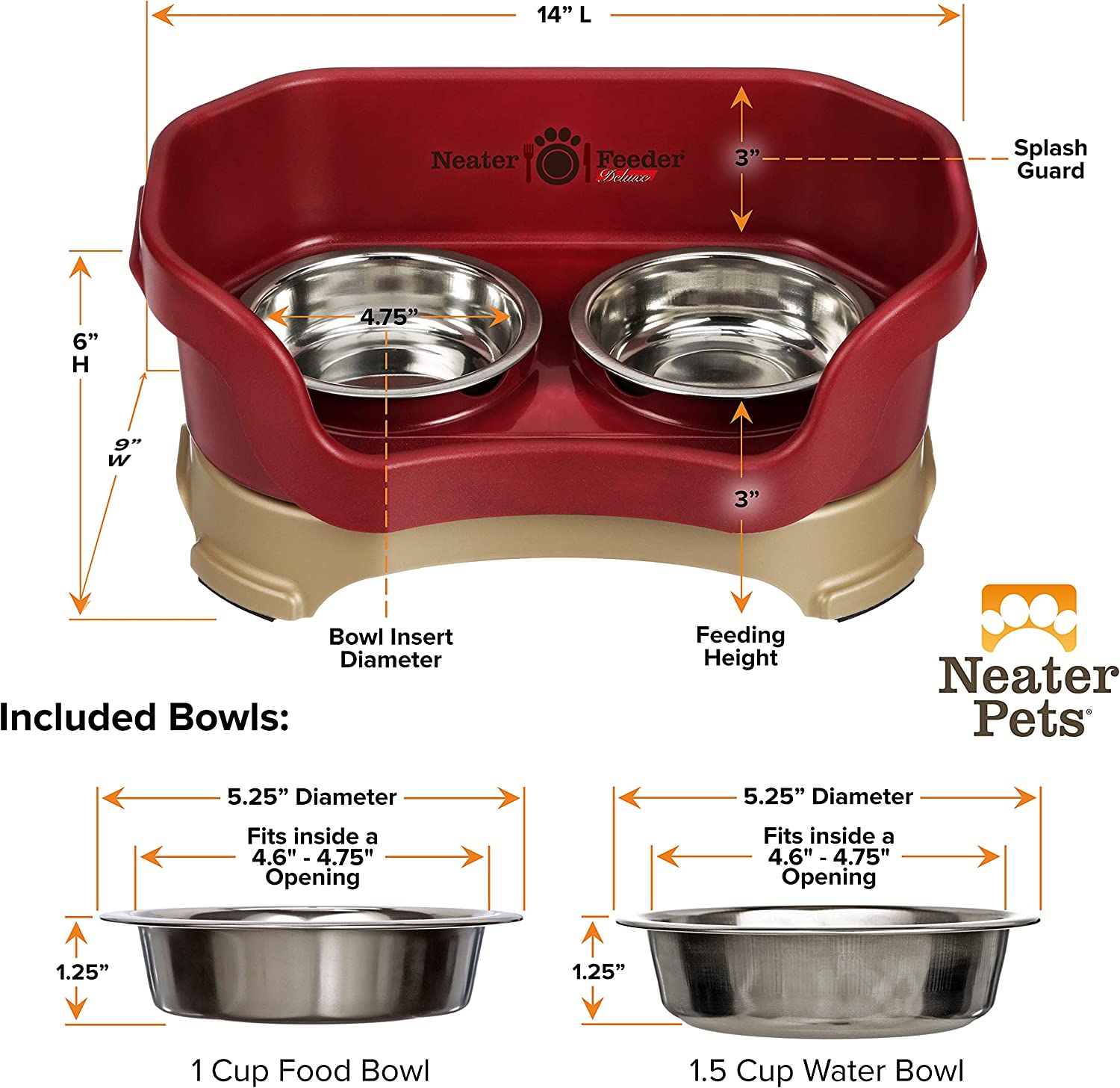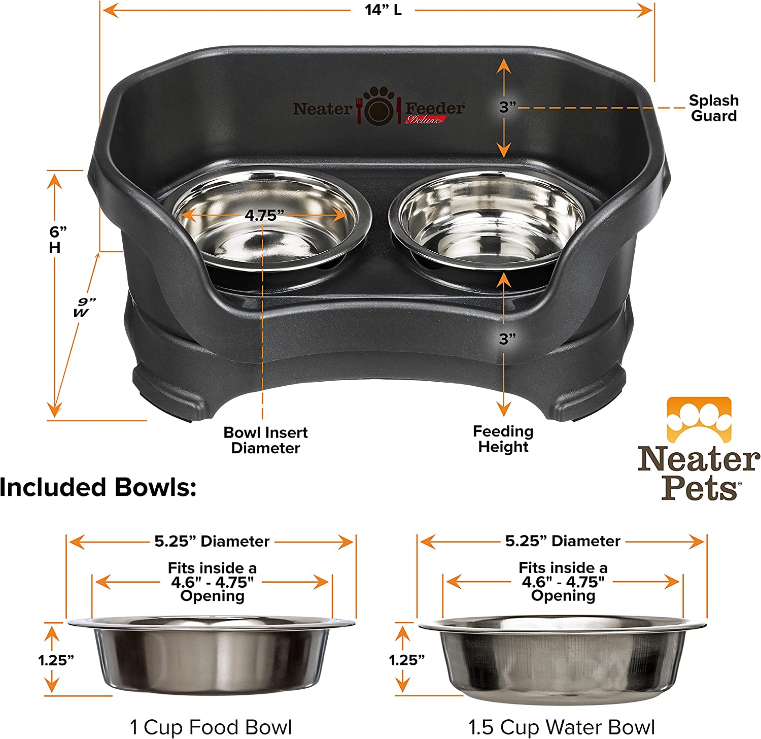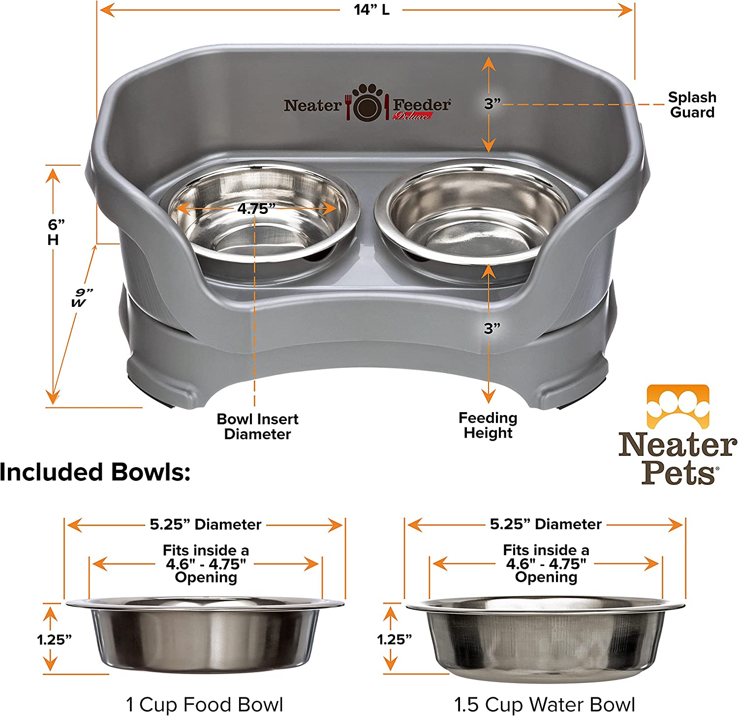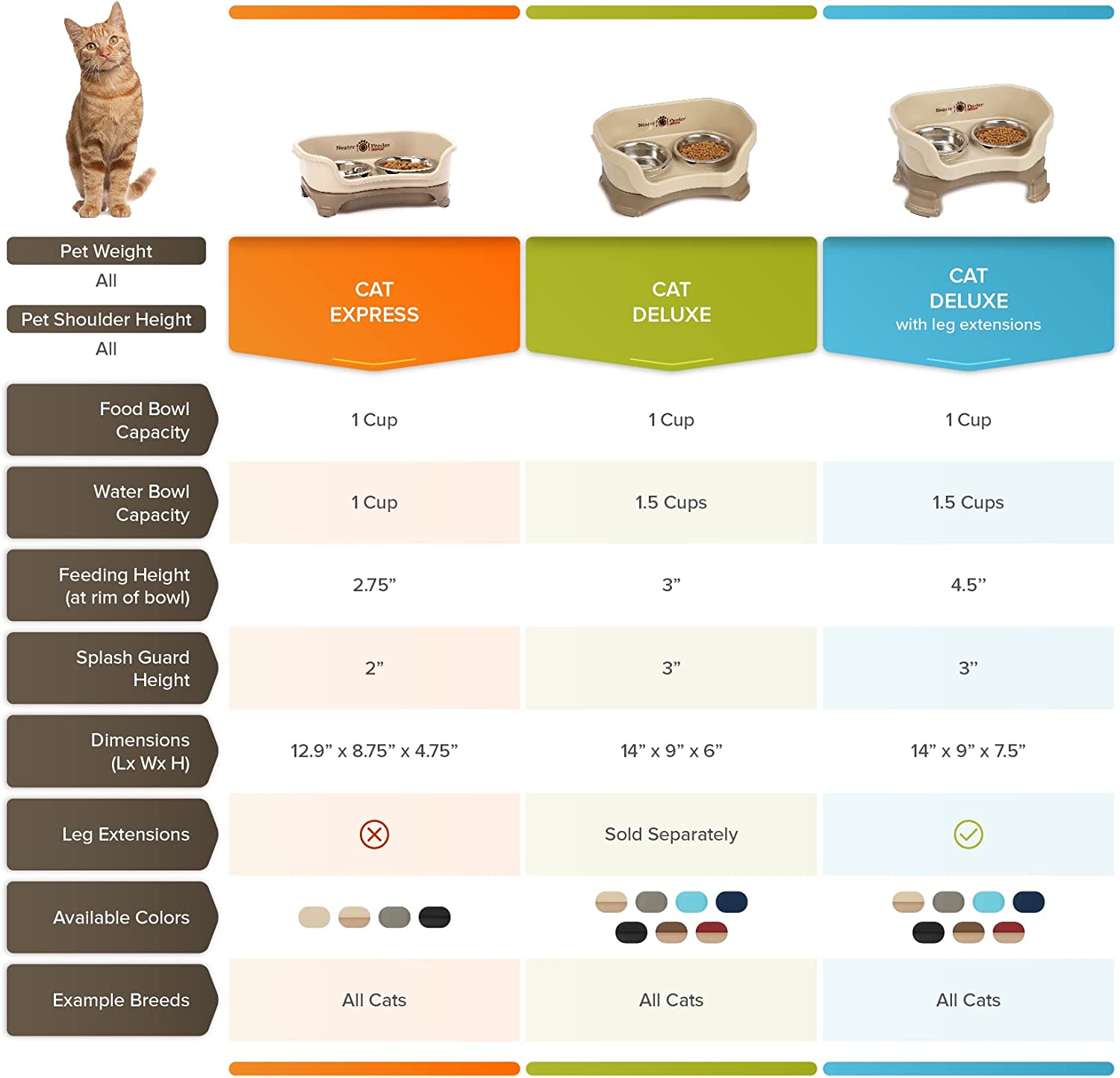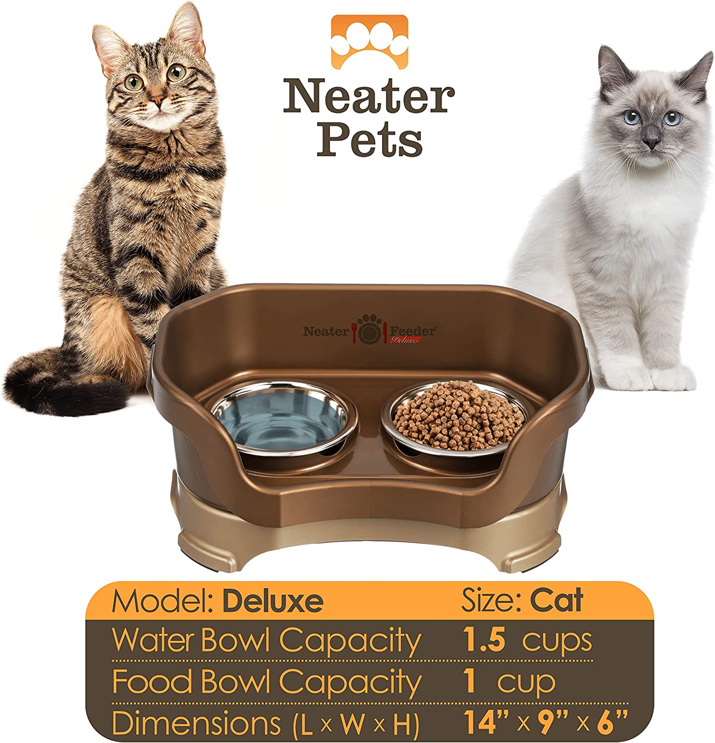 • GENTLE ON WHISKERS - The Neater Feeder comes with shallow food and water bowls that are gentle on your cat’s sensitive whiskers. Comes with a 1 cup capacity food bowl and an extra-capacity 1.5 cup water bowl so that your cat never goes thirsty.