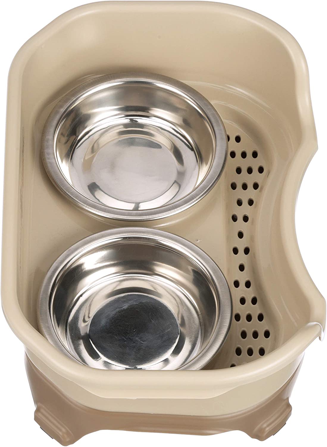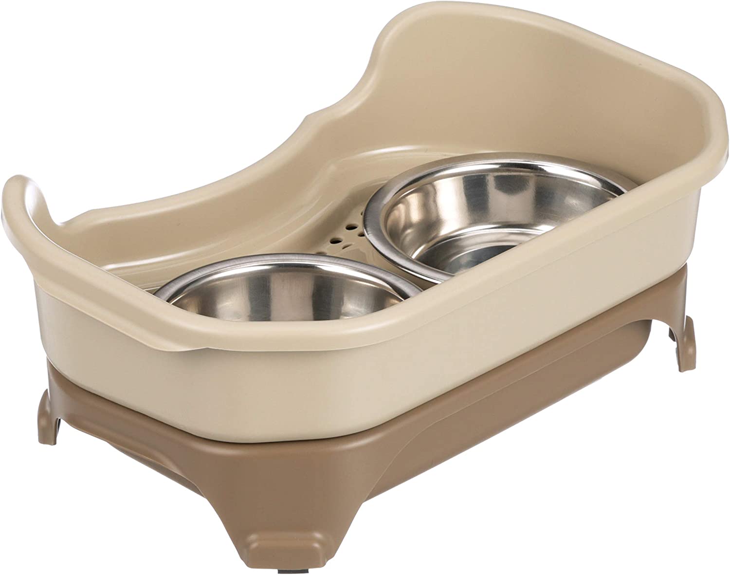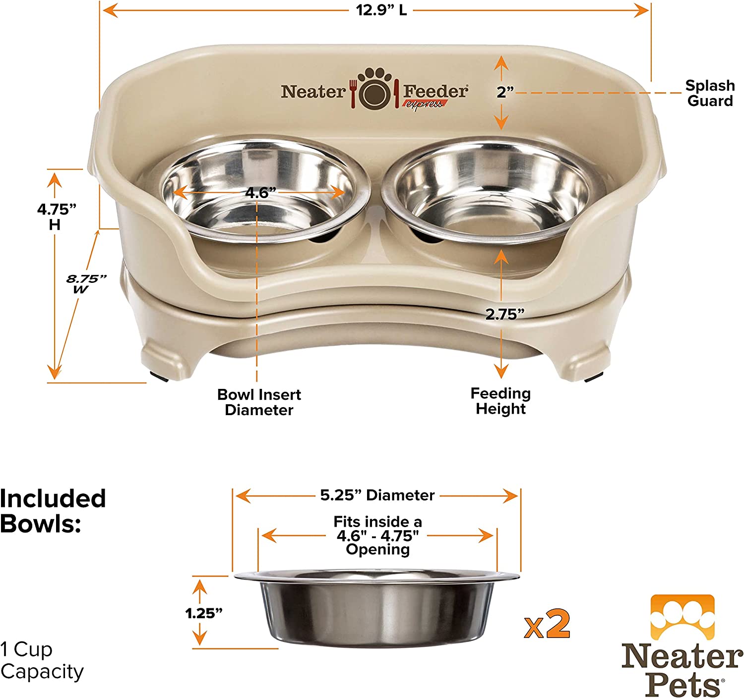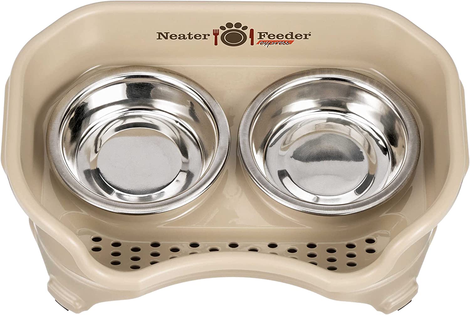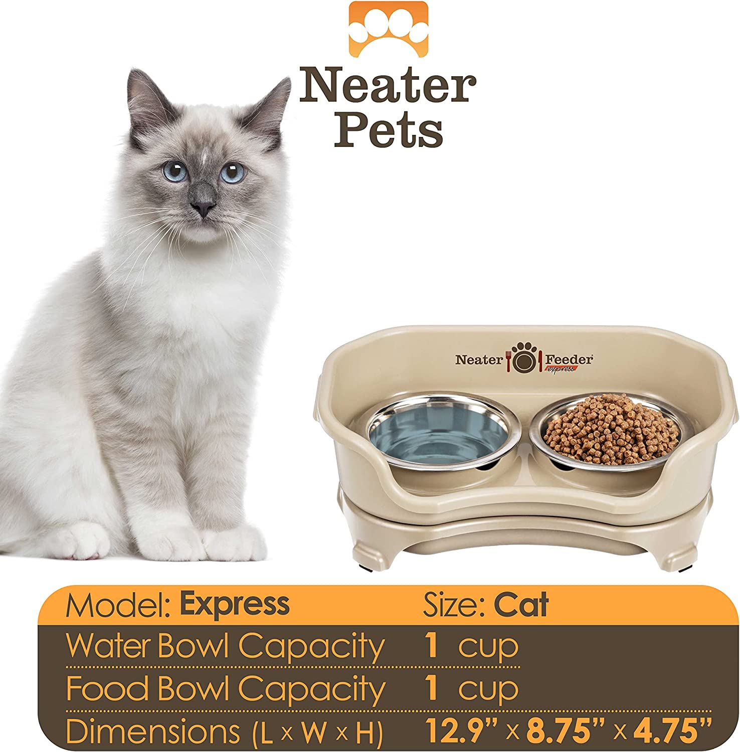 Neater Feeder Express for Cats - Mess Proof Pet Feeder with Stainless Steel Food & Water Bowls - Drip Proof, Non-Tip, and Non-Slip - Almond