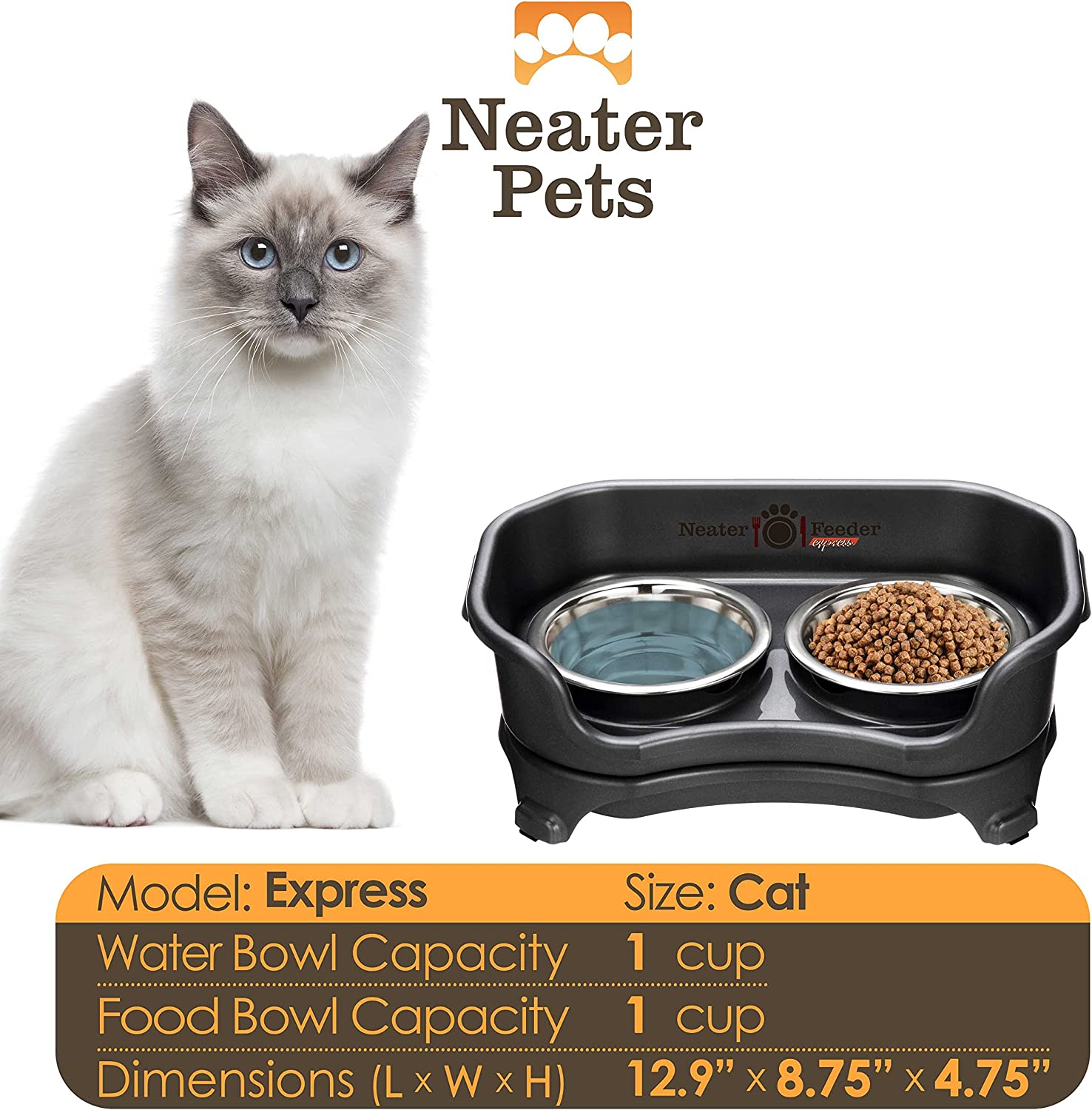 • GENTLE ON WHISKERS - The Neater Feeder comes with shallow food and water bowls that are gentle on your cat’s sensitive whiskers. Each cat bowl holds up to 1 Cup of food or water.