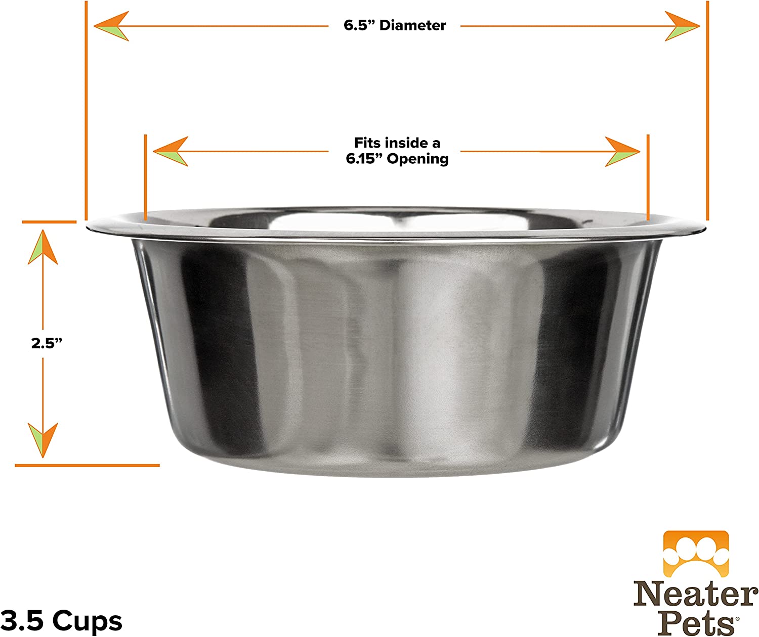 Neater Pet Brands Stainless Steel Dog and Cat Bowls (2 Pack) Neater Feeder Deluxe or Express Extra Replacement Bowl (Metal Food and Water Dish) (7 Cup)