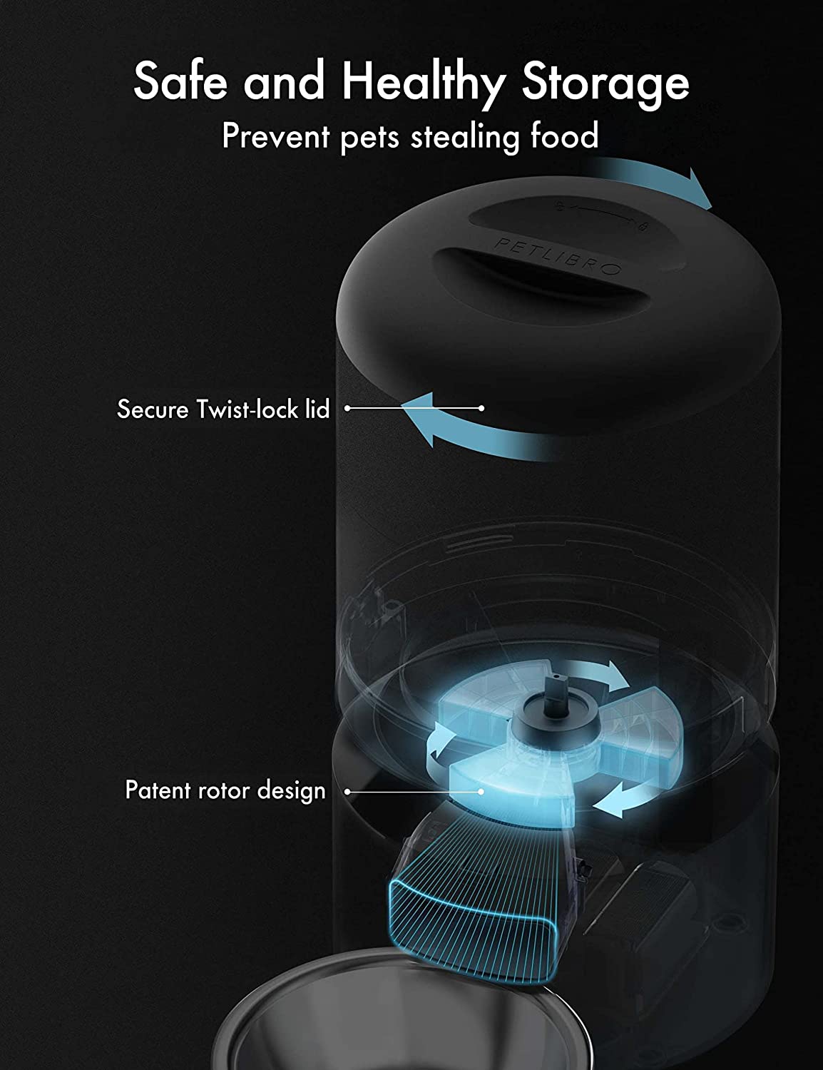 PETLIBRO Automatic Cat Feeder, Pet Dry Food Dispenser Triple Preservation with Stainless Steel Bowl & Twist Lock Lid, Up to 50 Portions 6 Meals Per Day, Granary for Small/Medium Pets