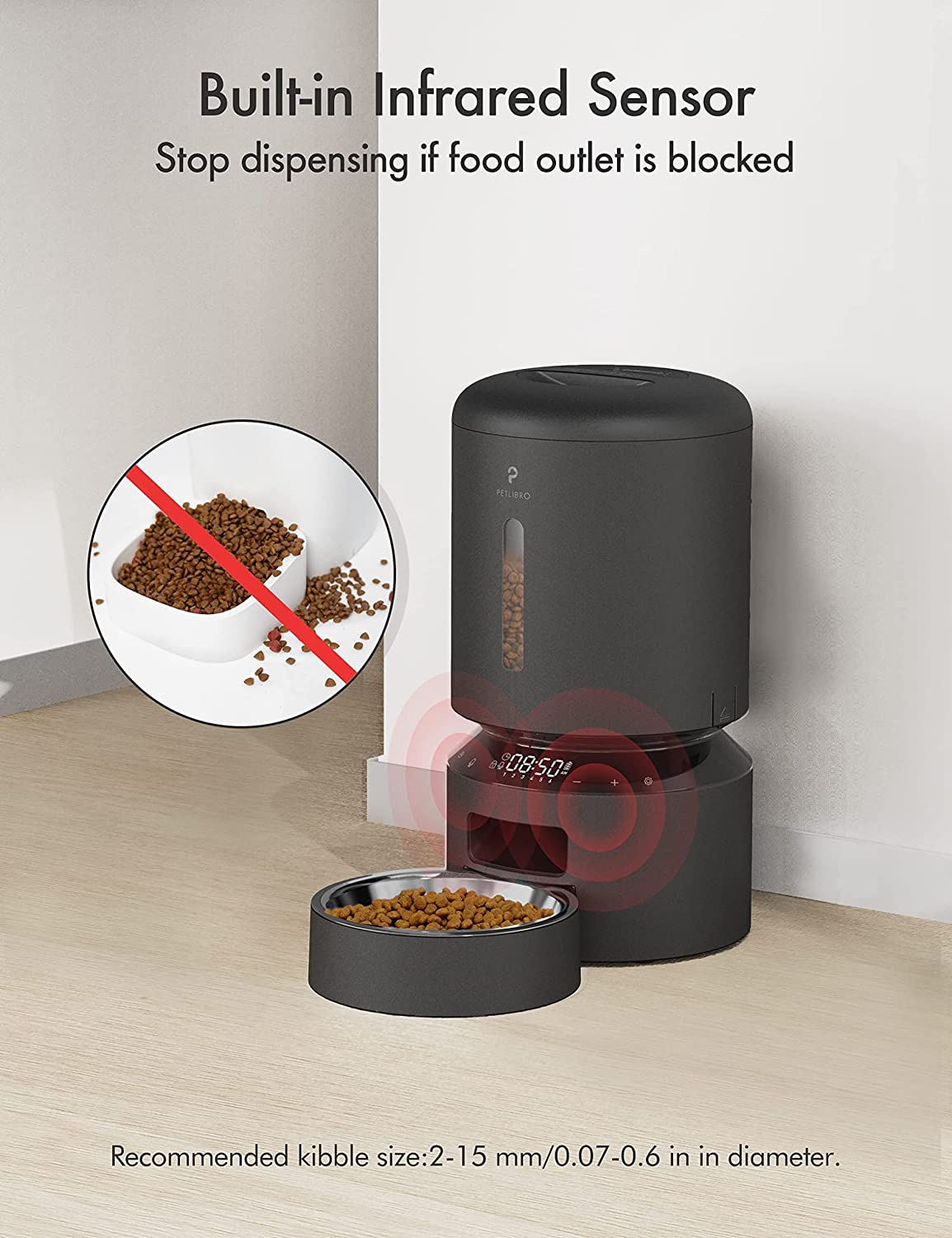• BPA-free and Easy to Clean: For your pet's health, PETLIBRO cat automatic feeders and accessories are BPA-free. The tank lid, tank, tank base, and food bowl of Granary dog automatic feeders are removable for thorough cleaning. And the built-in infrared sensor in the food outlet can stop dispensing food when the food outlet is blocked.