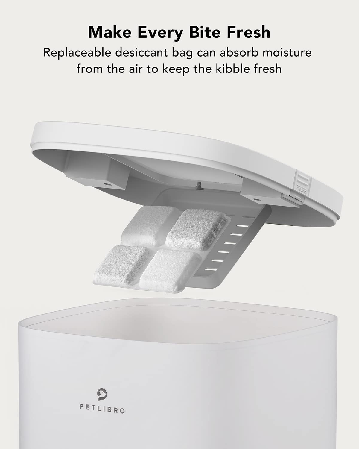 • Suitable Capacity: This 4L / 16.9cup pet dry food dispenser consistently provides food for your cat and small dog smoothly for a couple of day, assuring you that it' ll stay full and happy when you're out for a short vacation or work long hours as well as come with a desiccant bag to keep food fresh. (Search "B08NVBYQHV" for replacement)