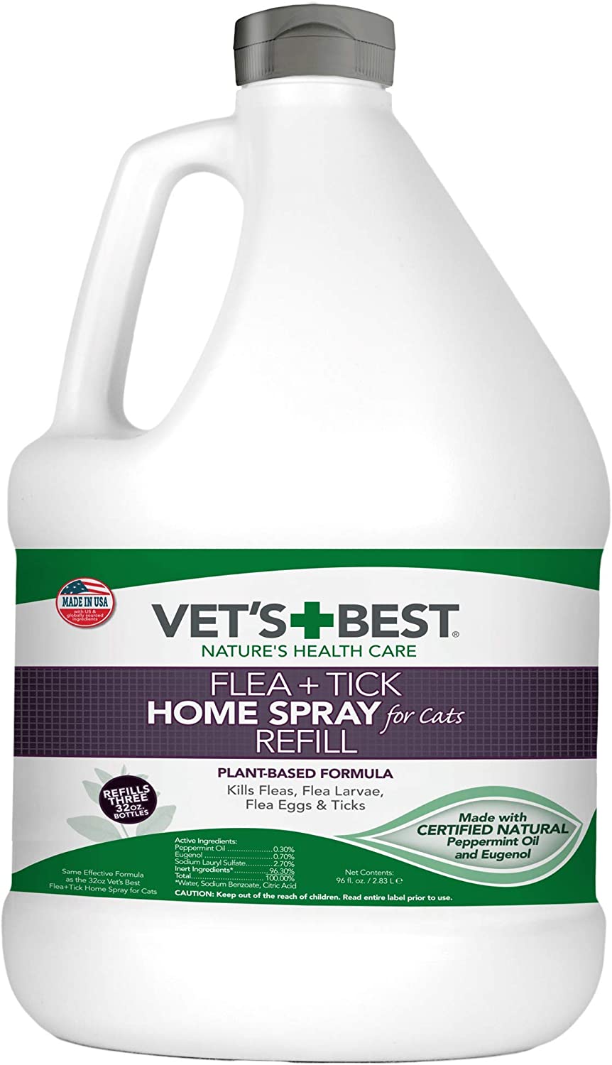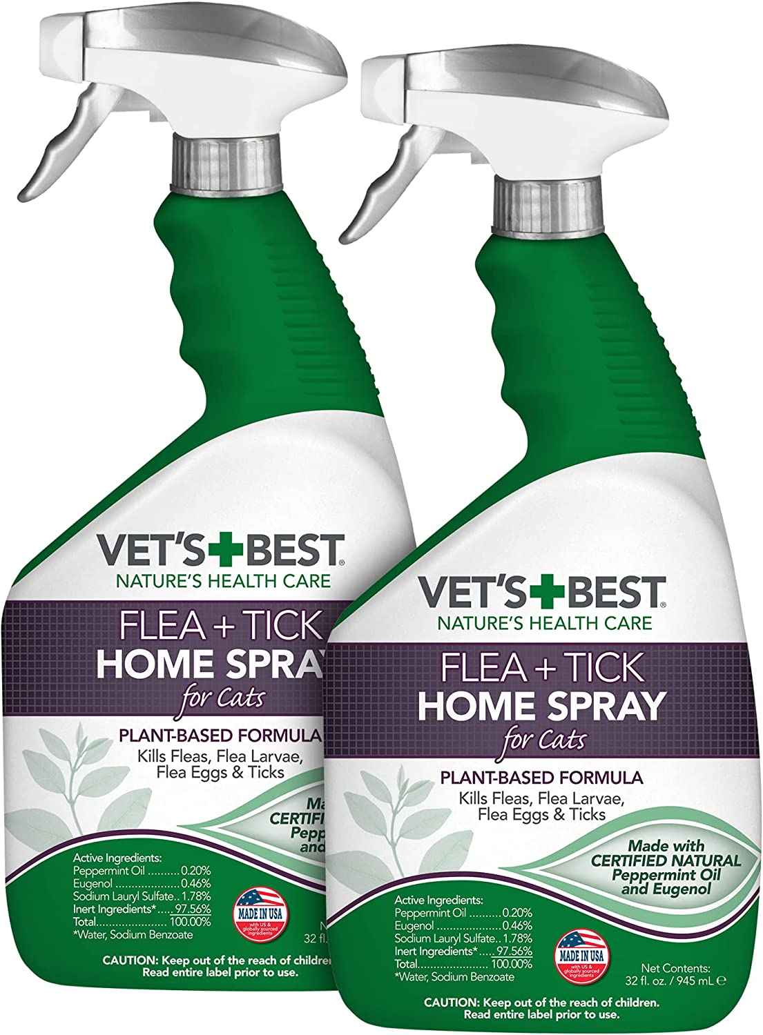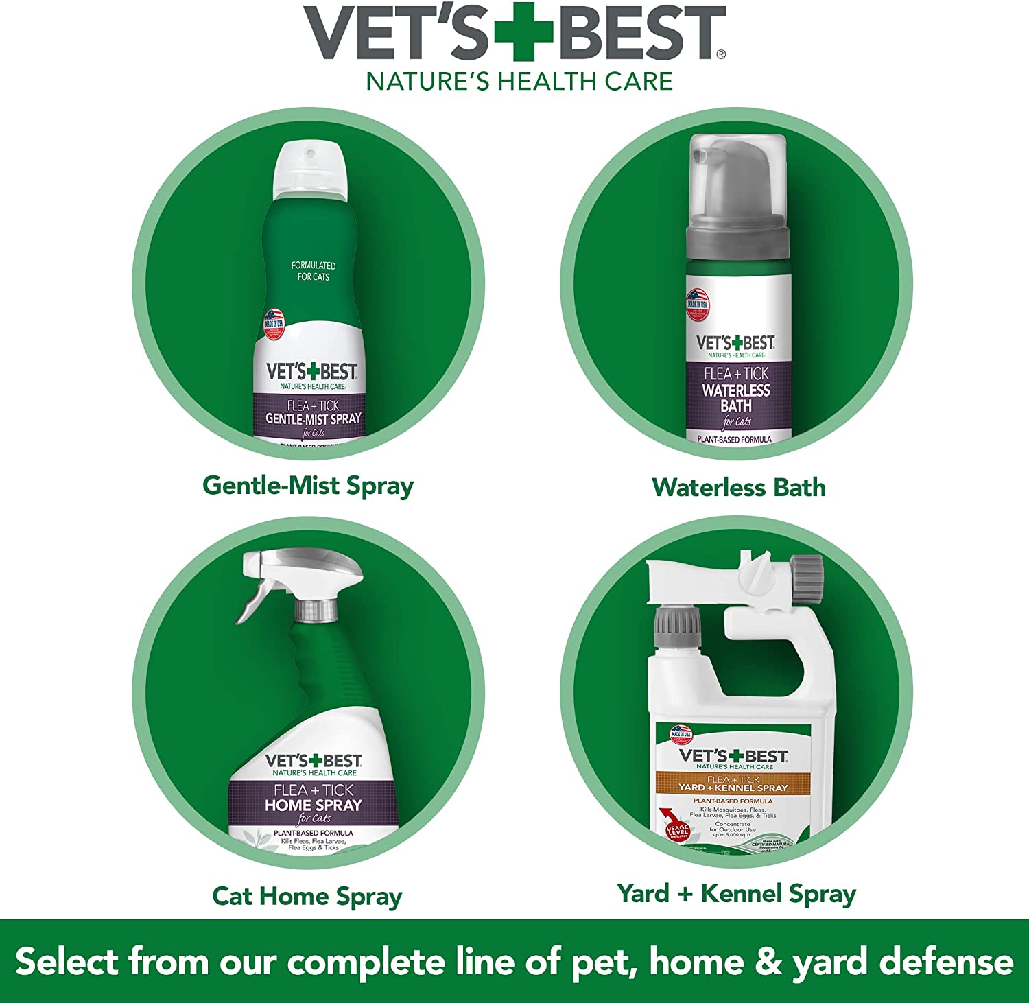 Introducing the ultimate solution for pesky flea and tick infestations with our highly effective Vet's Best Flea and Tick Easy Spray! Made in the USA, our veterinarian formulated spray is designed to combat fleas, flea larvae, flea eggs, and ticks with ease. With certified natural ingredients like peppermint oil and eugenol, you can protect your cat without worrying about harsh chemicals. Not only does our flea and tick spray for cats eliminate current infestations, but it also helps prevent future ones. And the best part? Our flea spray is safe for home use as it won't leave any stains on your furniture! So, say goodbye to the endless itching and scratching and hello to a comfortable, pest-free home with our flea and tick spray for home use.