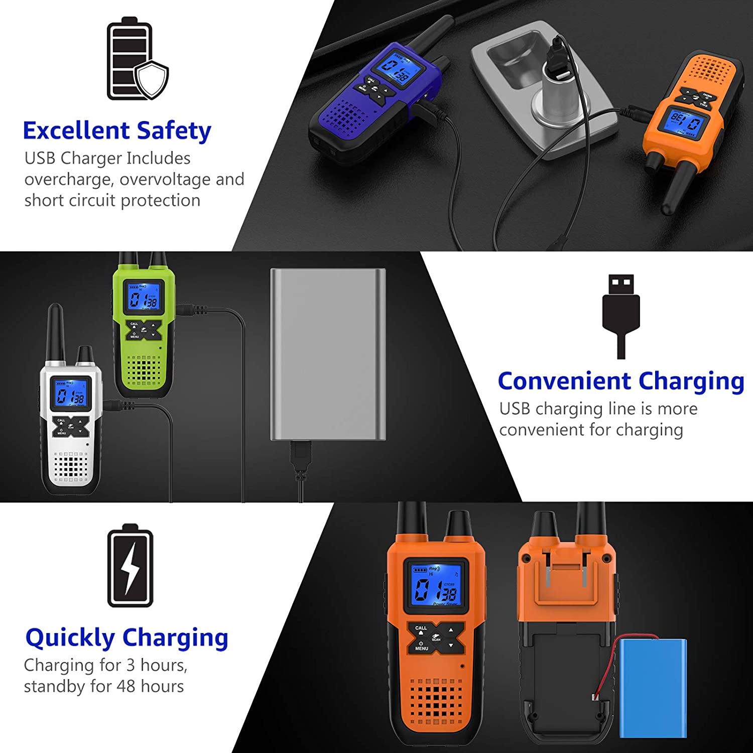✔ 4 * USB rechargeable walkie talkies(NOAA)