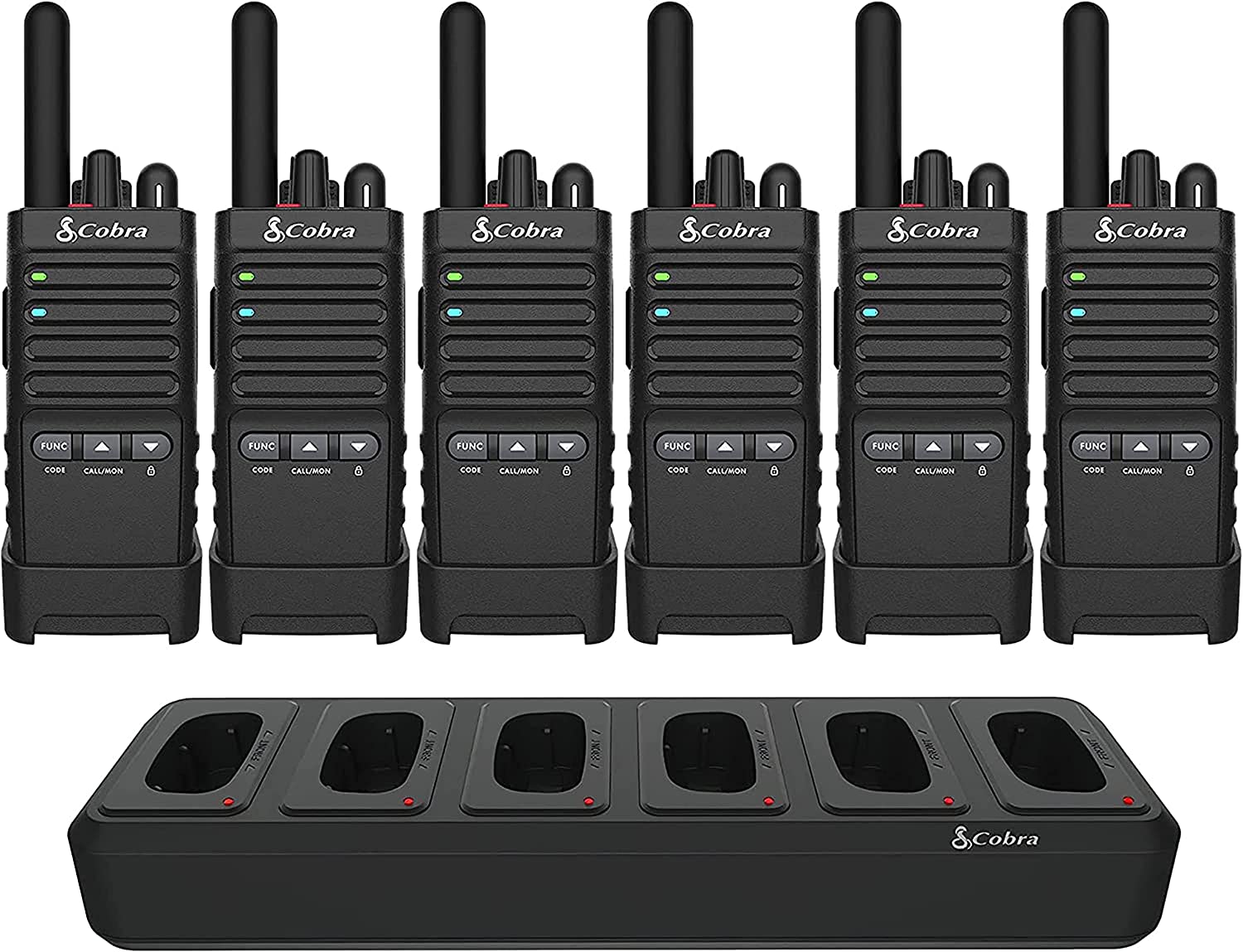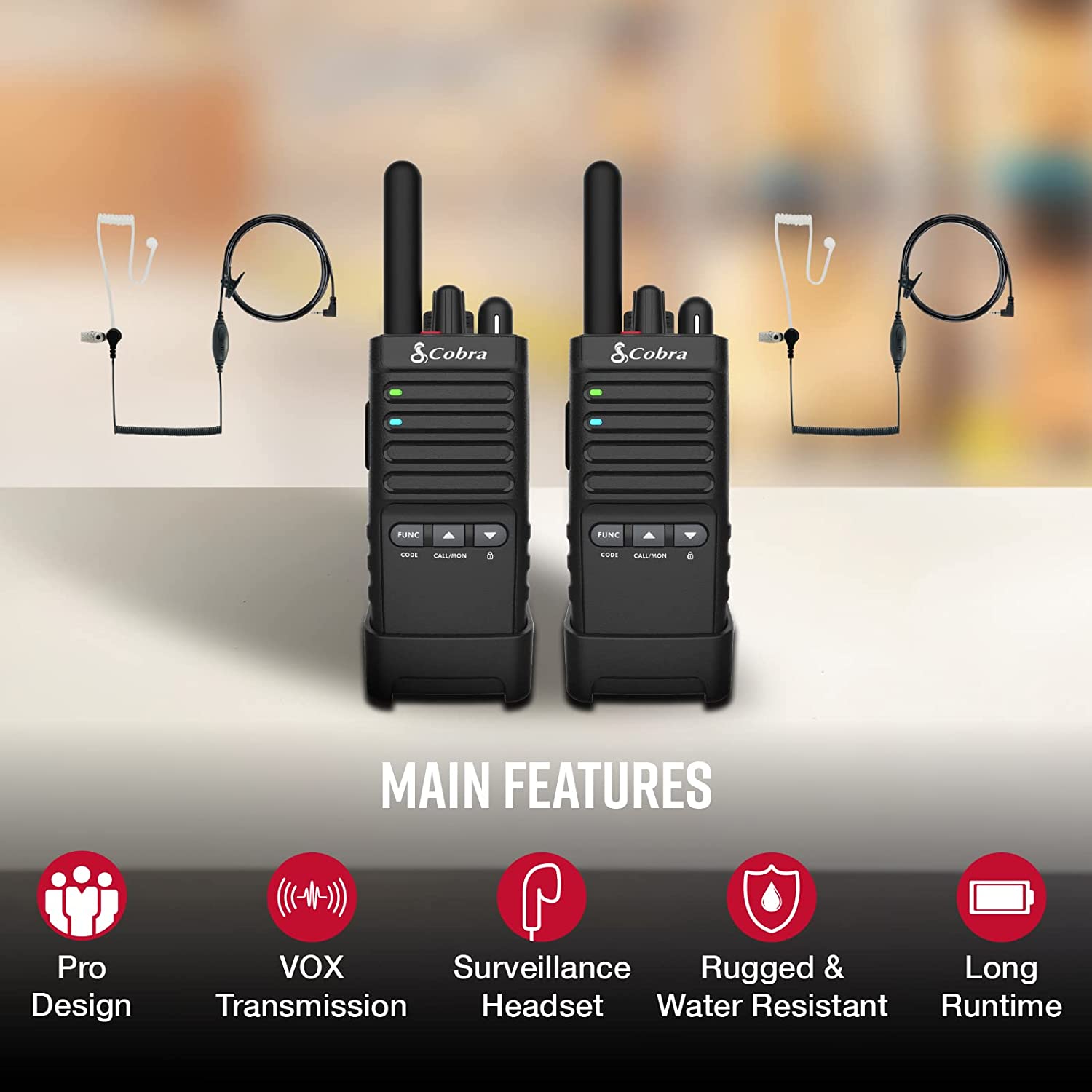 The Cobra PX650 Pro Business 2-Watt FRS Walkie Talkie Radios are ideal for larger business use and have a range up to 300,000 sq. ft./25 floors. With the Push-To-Talk button, dedicated volume/channel knobs, and Waterproof (IPX4) Rating, you'll always have clear and reliable communication.