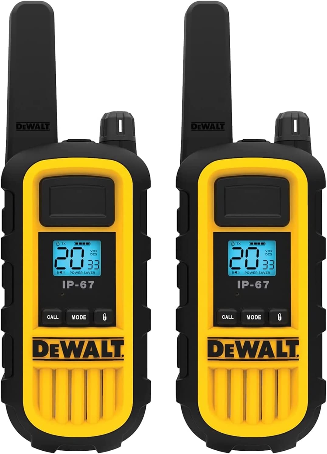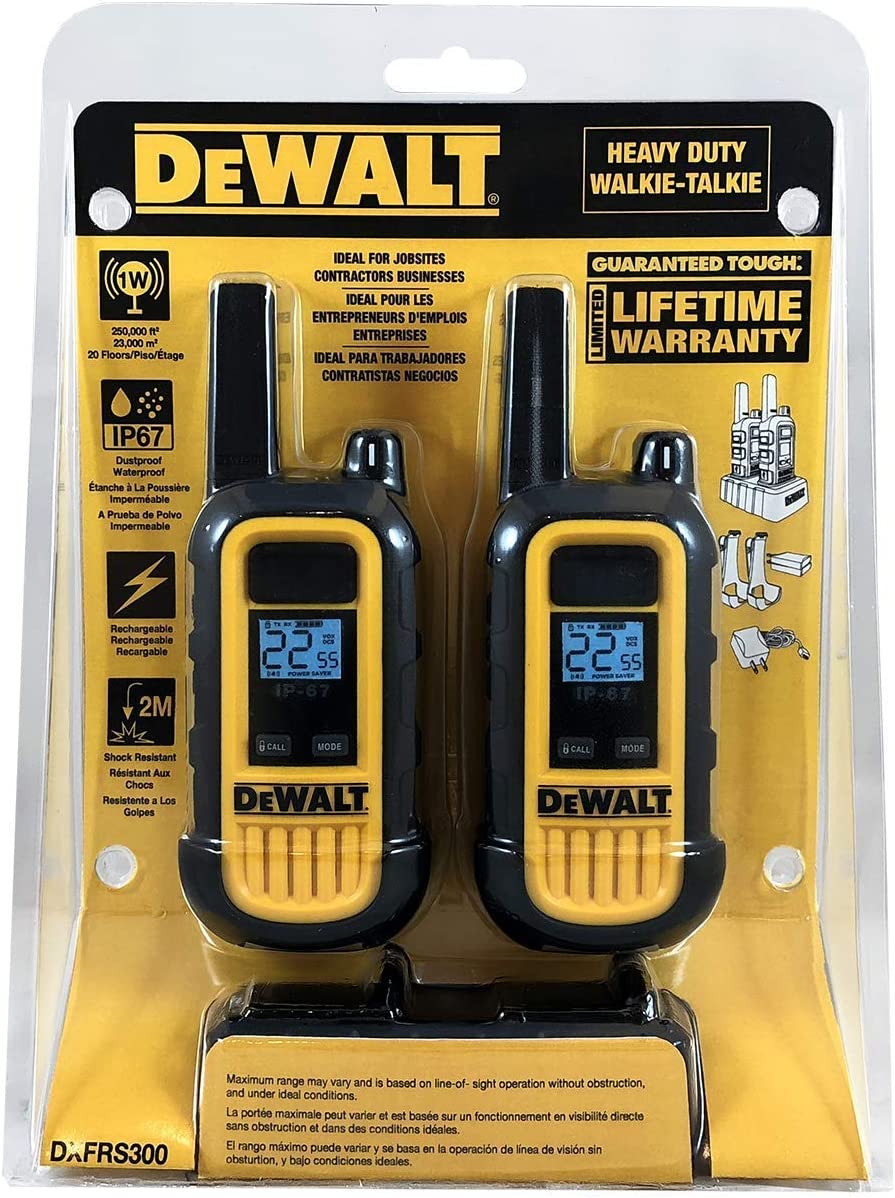 DEWALT heavy-duty walkie talkies are ideal for jobsites, contractors, and businesses. These reliable, feature-rich radios have ultra-clear long-distance reception and rugged durability that stands up to the elements. Stay in touch while on the job with secure, versatile talk that's guaranteed tough and backed by an industry-leading limited lifetime warranty and convenient accessories that power growing teams.