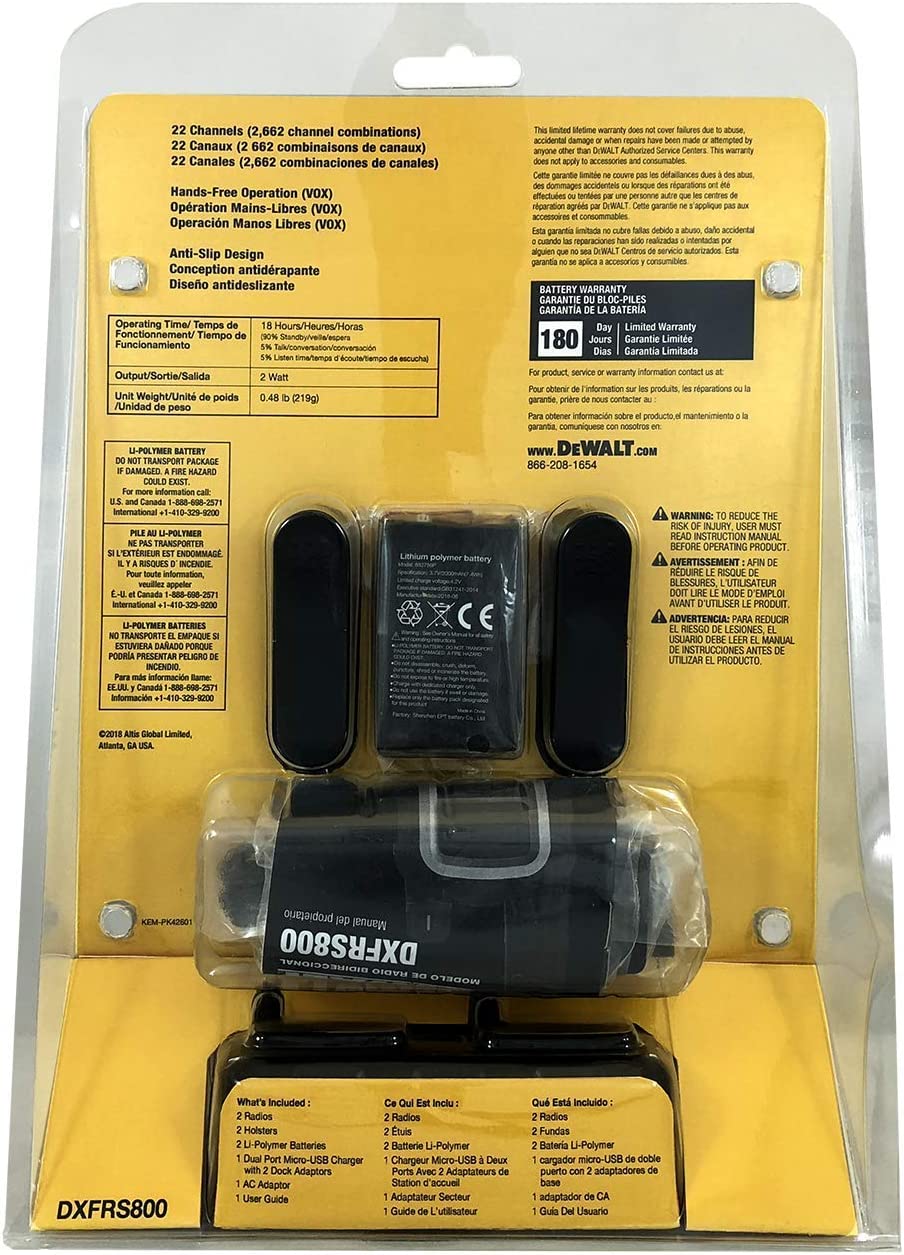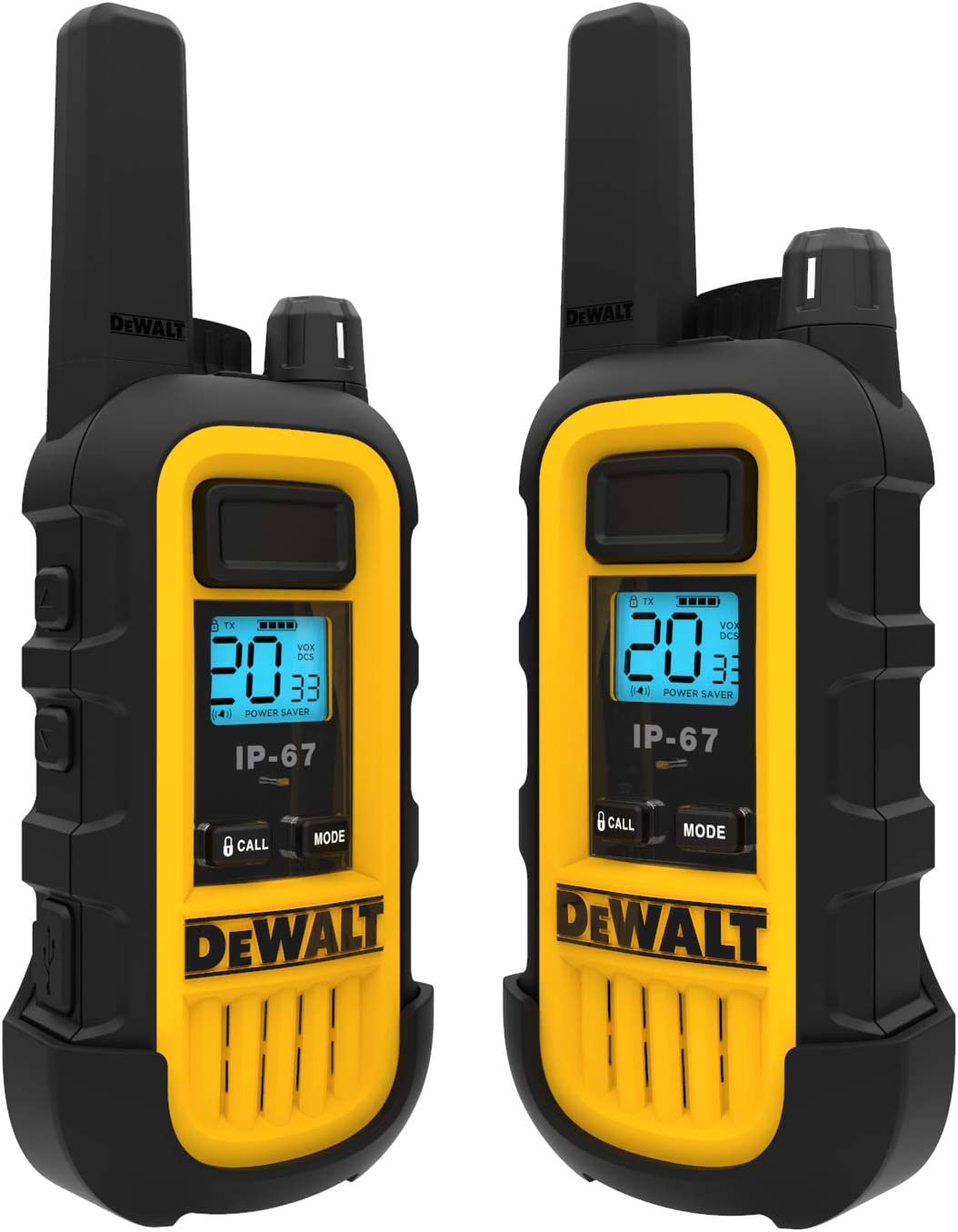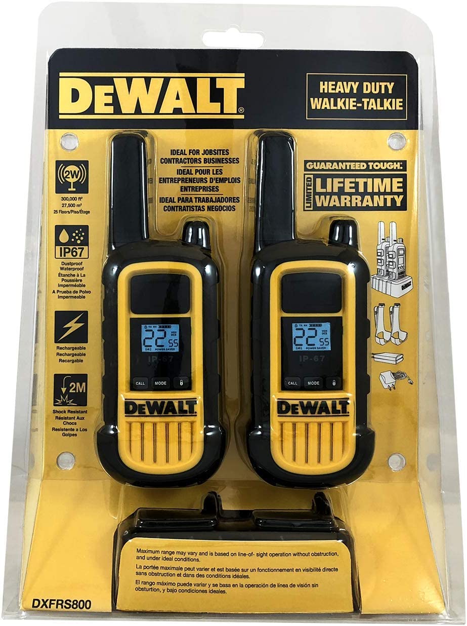 DEWALT DXFRS800 2 Watt Heavy Duty Walkie Talkies - Waterproof, Shock Resistant, Long Range & Rechargeable Two-Way Radio with VOX (2 Pack)