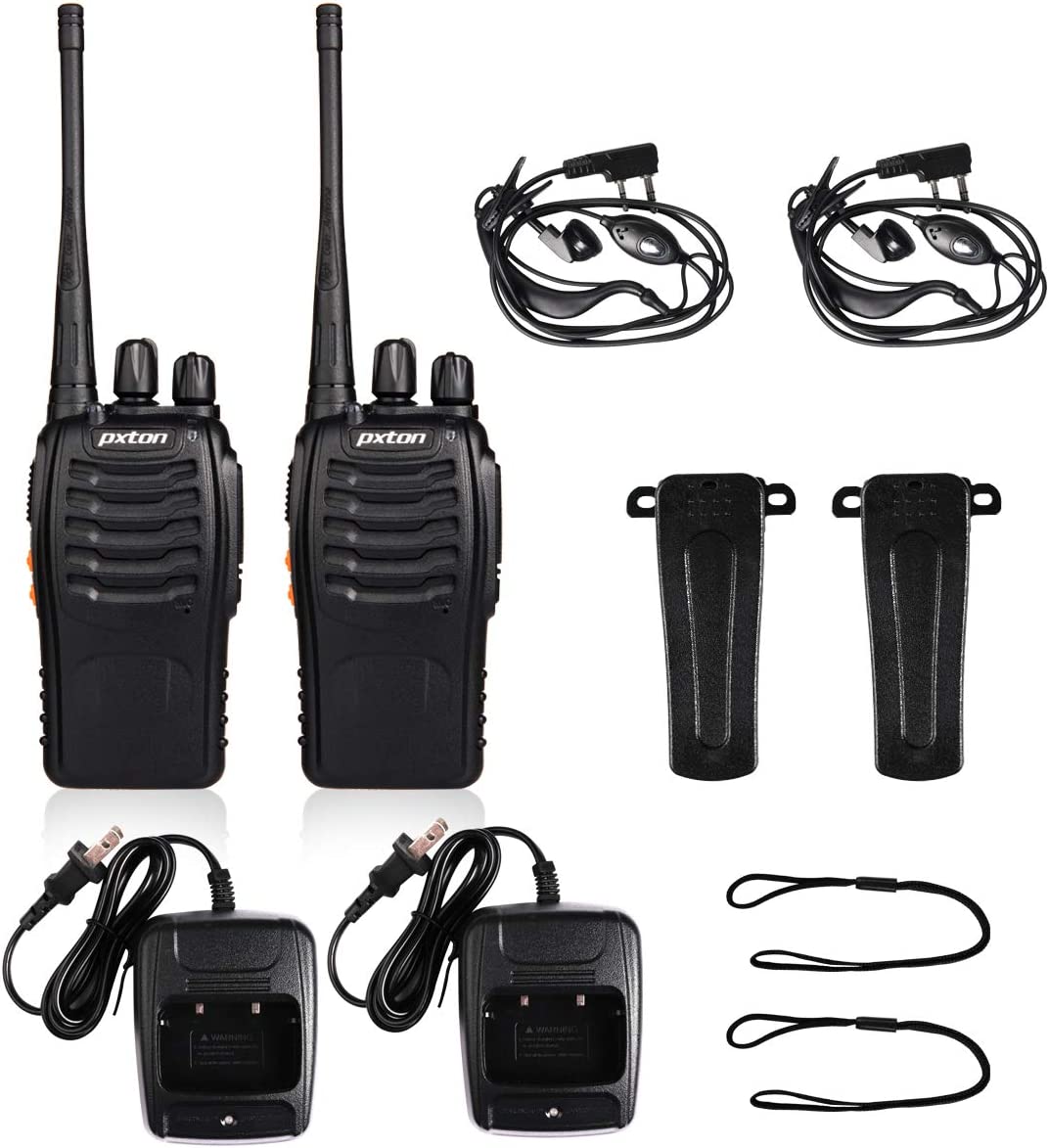 pxton Walkie Talkies Rechargeable Long Range Two-Way Radios with Earpieces,2-Way Radios UHF Handheld Transceiver Walky Talky with Flashlight Li-ion Battery and Charger(2 Pack)