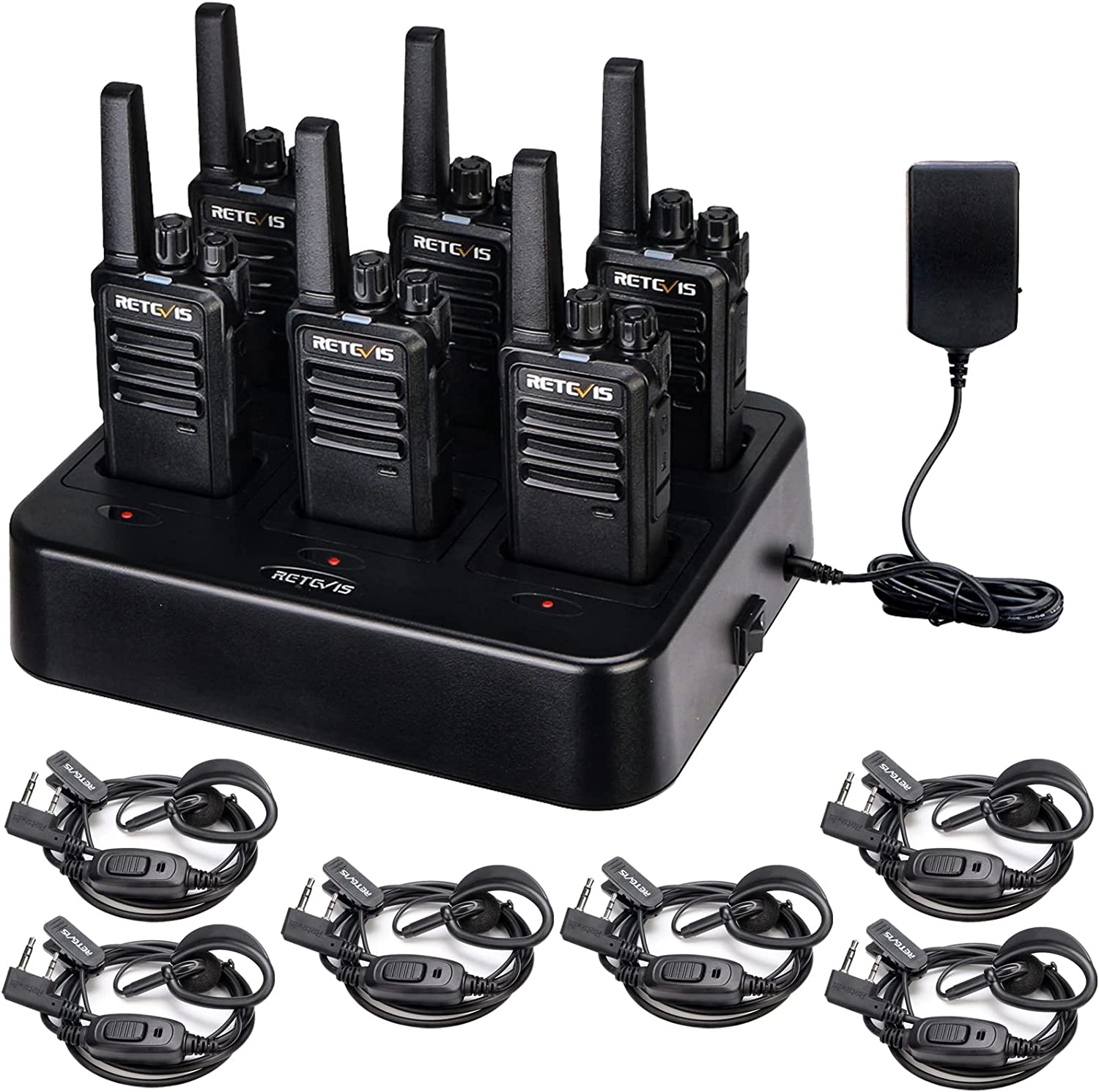 Retevis RT68 Walkie Talkies with Earpiece, Portable FRS Two-Way Radios Rechargeable, with 6 Way Multi Unit Charger, Hands Free, Long Range, Rugged 2 Way Radios 6 Pack for Adults School Church