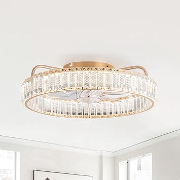 20" Enclosed Ceiling Fans with Lights and Remote, Low Profile Flush Mount Gold Ceiling Fan, Modern Bladeless Caged Ceiling Fan with Led Light for Bedroom, 7 Transparent Blades