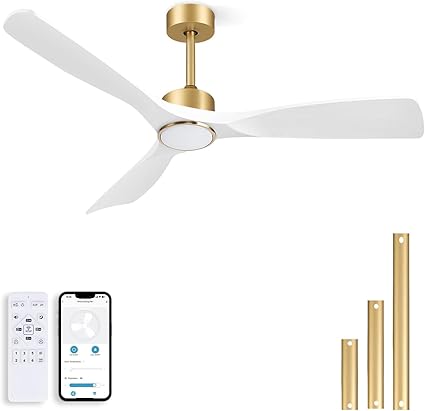 Ceiling Fans with Lights, Ceiling Fans with Lights and Remote Control, 52 inch Modern Smart White and Gold Ceiling Fan, Outdoor Ceiling Fans for Patios 3 Blade Bedroom FarmhouseÇ__WhiteÇ__