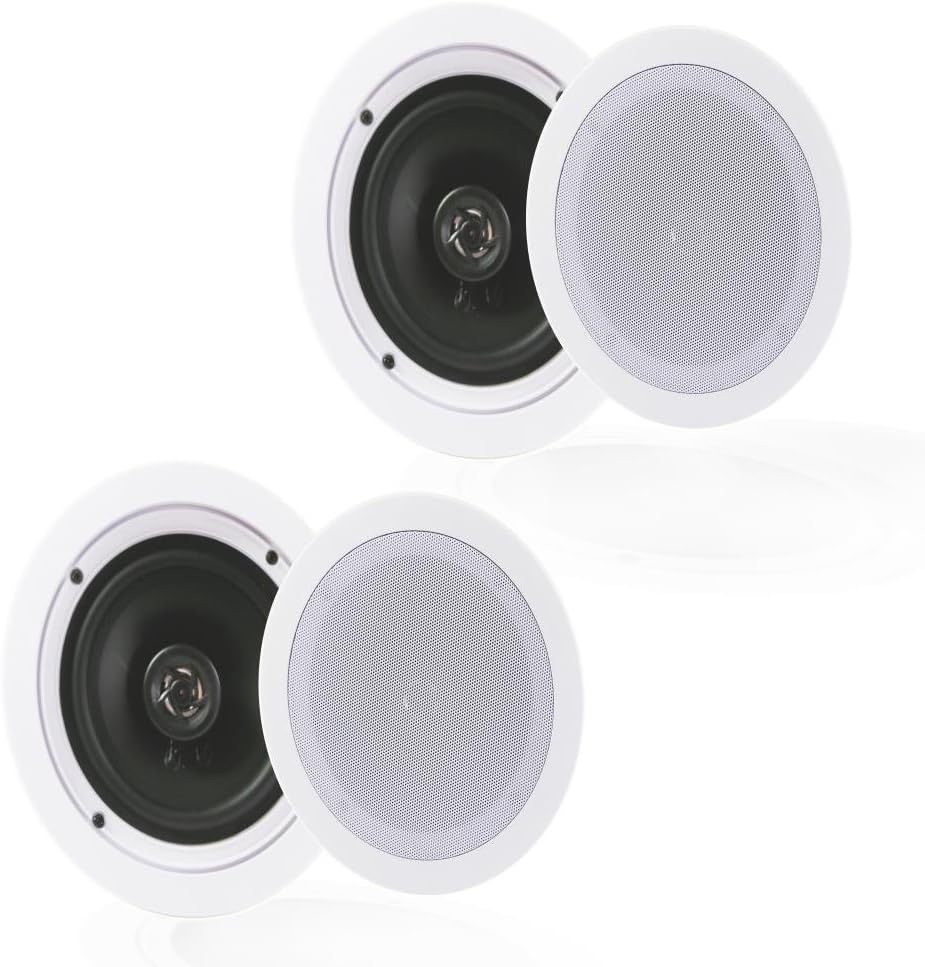 • FLUSH MOUNT DESIGN - Compact flush mount design for simple easy installation in-wall / in-ceiling , or pre-cut speaker openings, for in home use, office, professional, or custom audio applications on any flat surface.