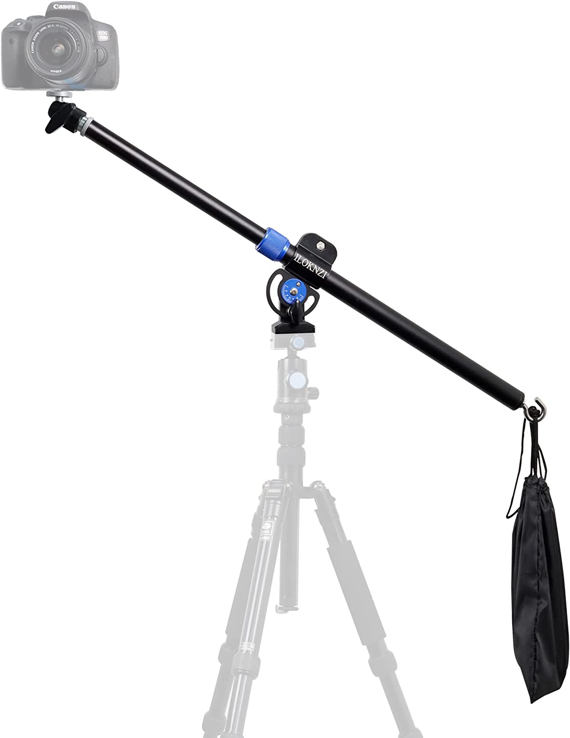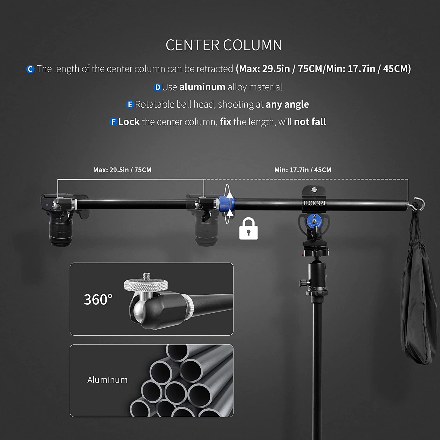 ILOKNZI 30 Inch Aluminum Tripod Extension Arm Overhead Camera Mount, Horizontal Retractable Center Column, Phone/Camcorder Shooting, with Phone Holder