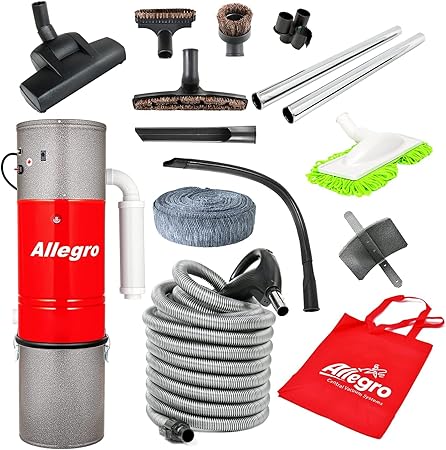 Allegro Central Vacuum System 3, 000 sq. ft. Home, 30' Hose Kit and Cleaning Accessories