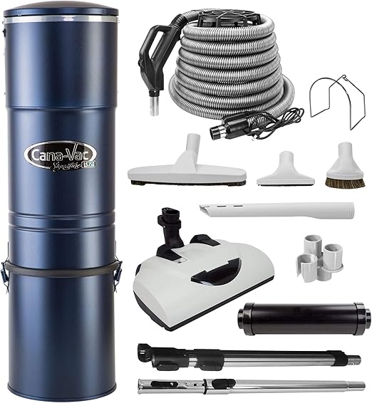 CanaVac LS750 Signature Series Central Vacuum Cleaner - Tangential Bypass Motor Up to 10, 000 sq ft.- with The LS Performance Pack Superb for Hardwood Floors, Berber, Plush Carpeting. (30 FT)