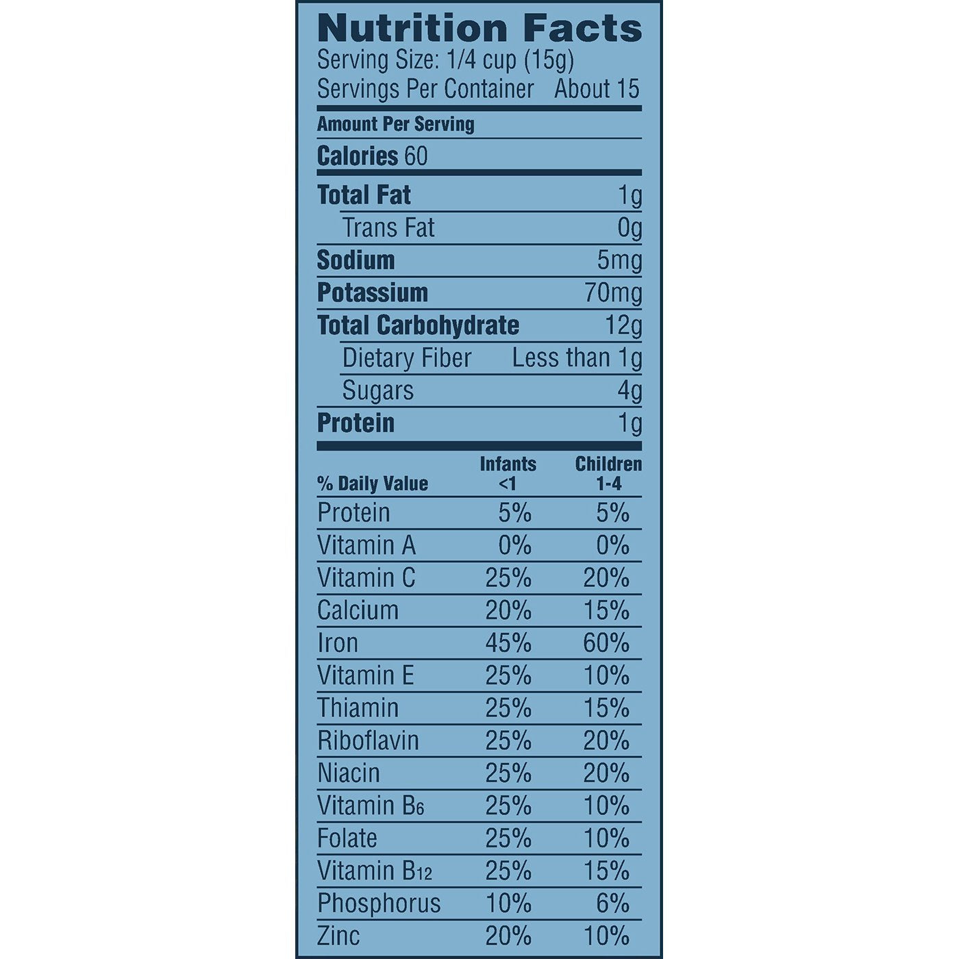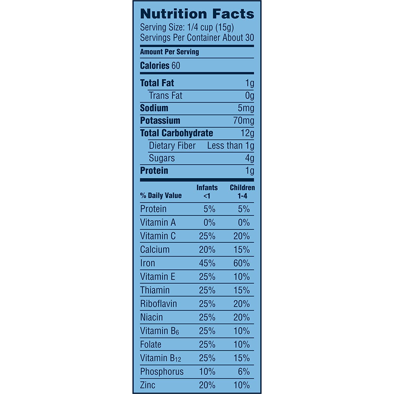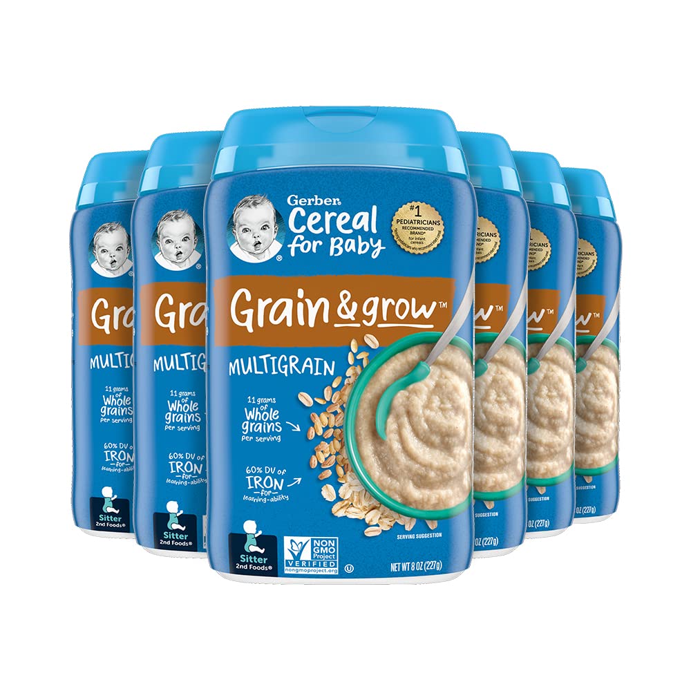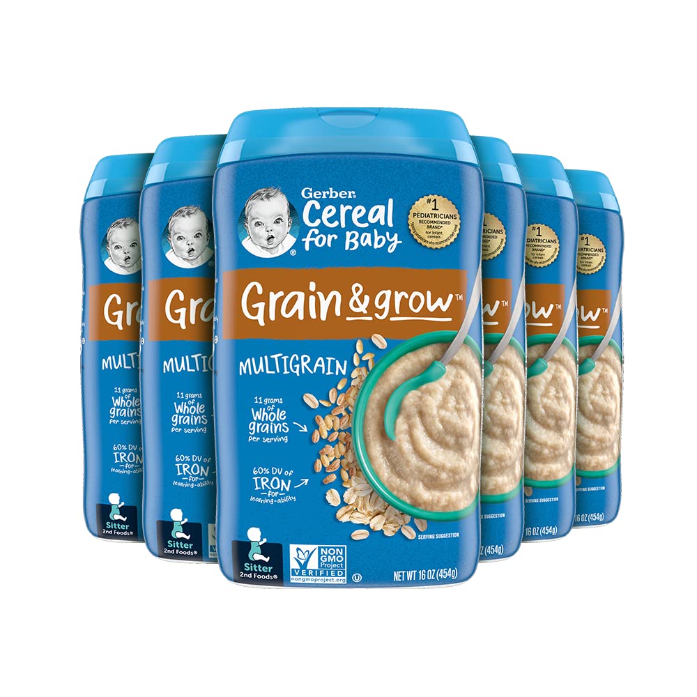 Once your little one has mastered Gerber Single Grain cereals give Gerber Multigrain baby cereal a try! It helps expose babies to new tastes while providing essential nutrition. It has iron to help support learning ability - just 2 servings of baby cereal a day has 90% of your baby's daily value of iron. It also has Vitamin C and 6 B Vitamins for healthy growth and Calcium to help build healthy bones and teeth.
