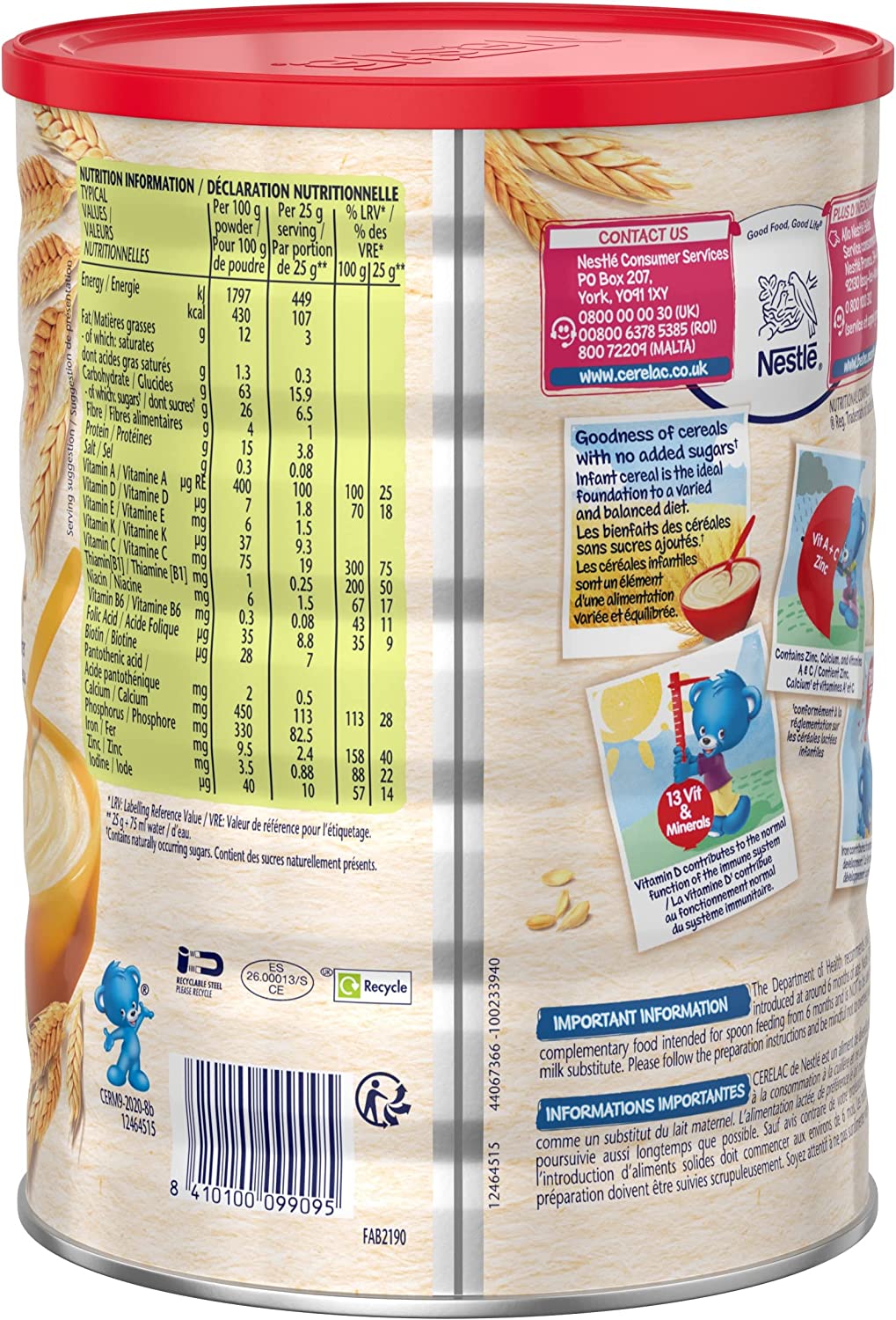 Cerelac compliments the milk feeds perfectly as it has the nutritional value of a fully balanced meal for baby, and tastes great too. By feeding your baby Cerelac you can be assured that your baby gets all the energy, protein, vitamins and minerals need.