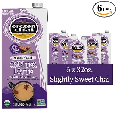 Oregon Chai Slightly Sweet Chai Concentrate, 32 Fluid Ounce (Pack of 6)