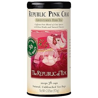 The Republic of Tea _ÑÓ Republic Pink Chai Herbal Tea Tin, 36 Tea Bags, Naturally Caffeine Free