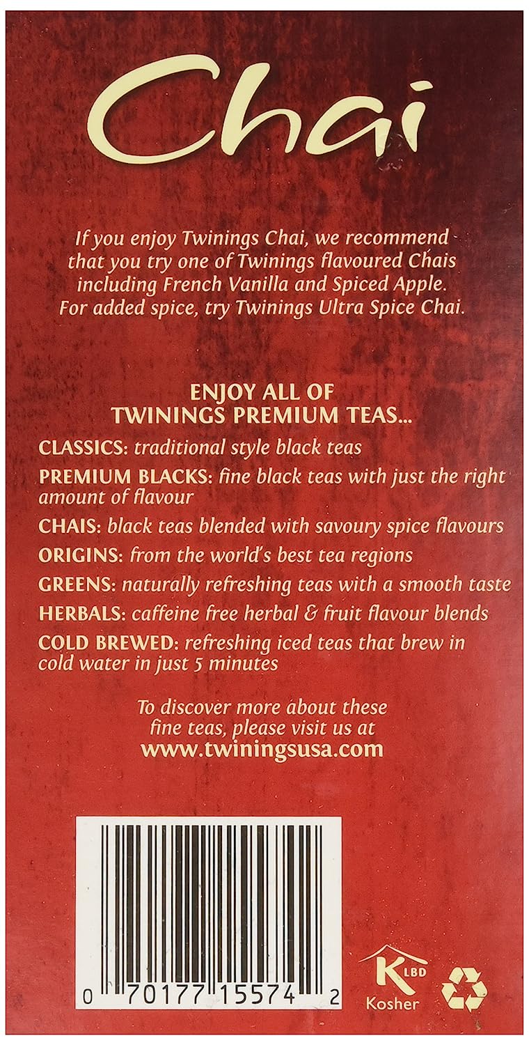 • QUALITY TEA & CHAI SPICES: Twinings chai tea starts with leaves cultivated to exacting standards by trusted growers around the world.