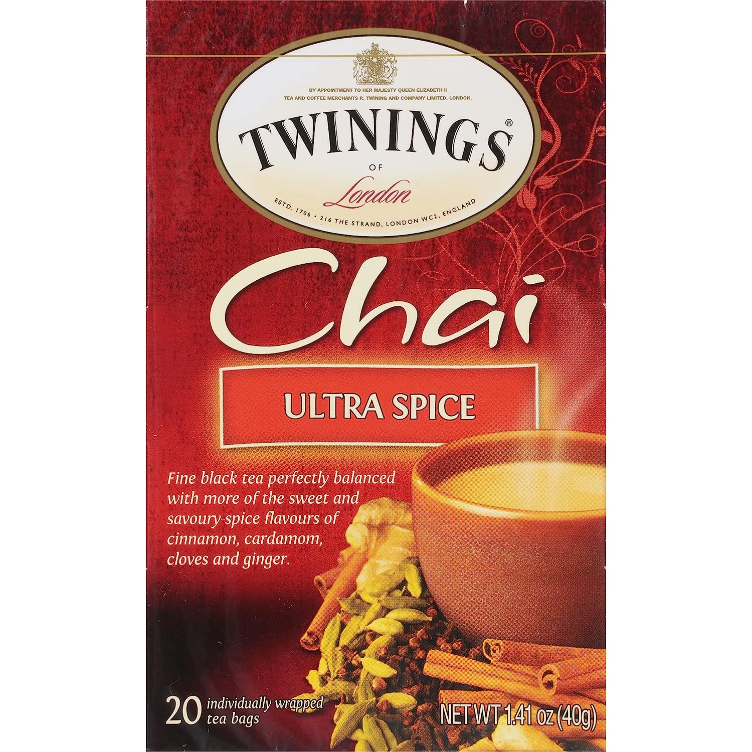 Twinings Ultra Spice Chai Tea Bags - Individually Wrapped, Black Tea with Cinnamon, Ginger, Cardamon & Clove, 20 Count (Pack of 3)