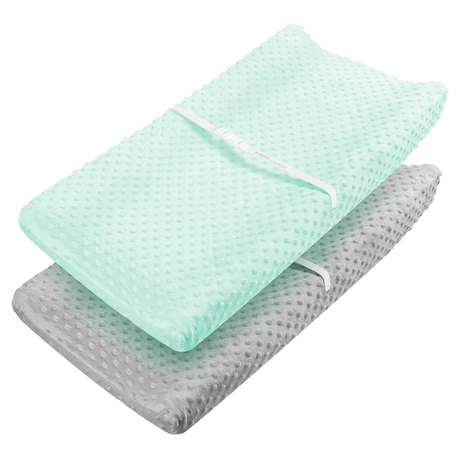 Changing Pad Cover - Babebay Ultra Soft Minky Dots Plush Changing Table Covers Breathable Changing Table Sheets Wipeable Changing Pad Covers Suit for Baby Boy and Baby Girl (2 Pack)