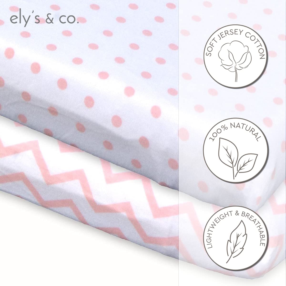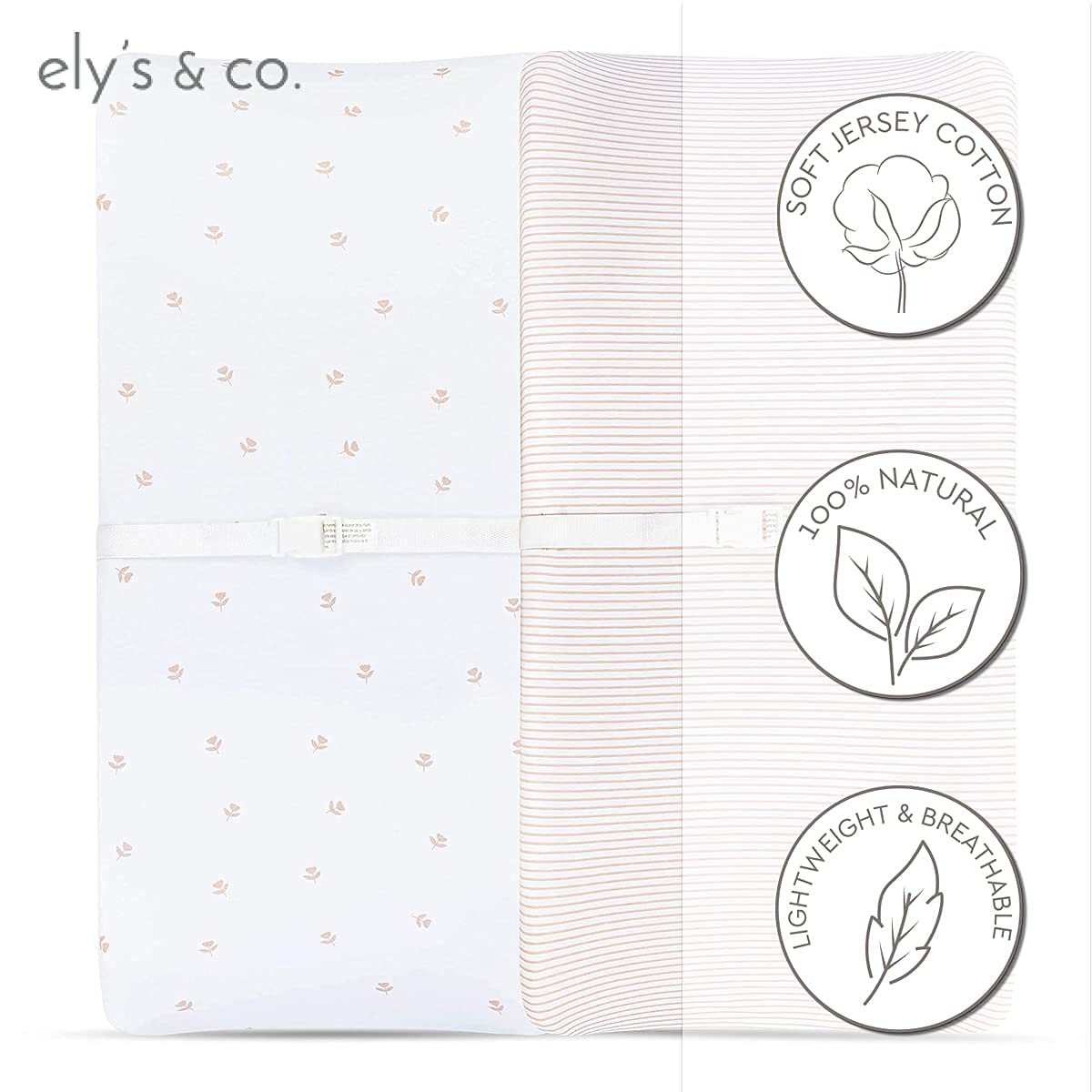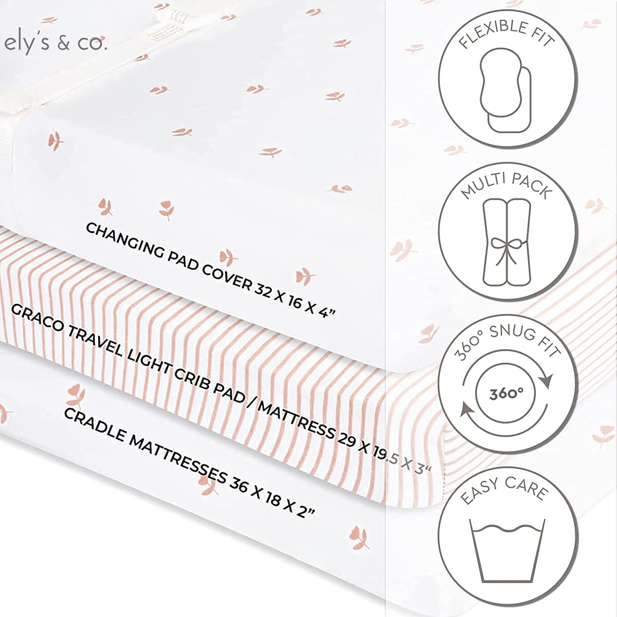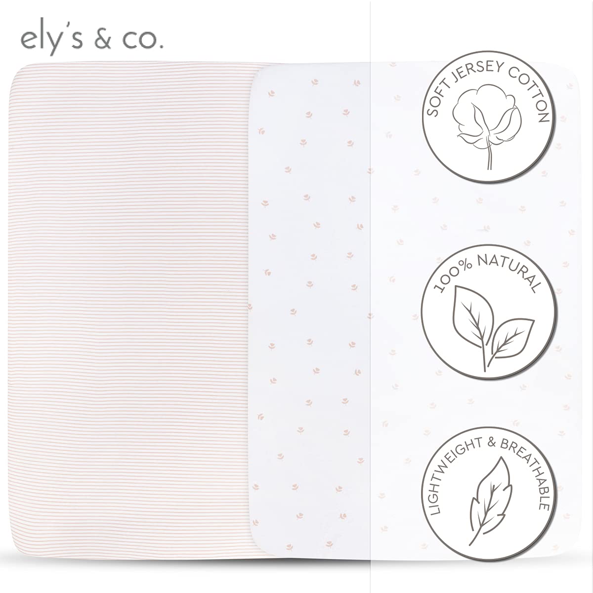 Ely's & Co. Changing Pad Cover | Cradle Sheet Set, 100% Jersey Cotton 2-Pack — Pink Tulip & Stripes