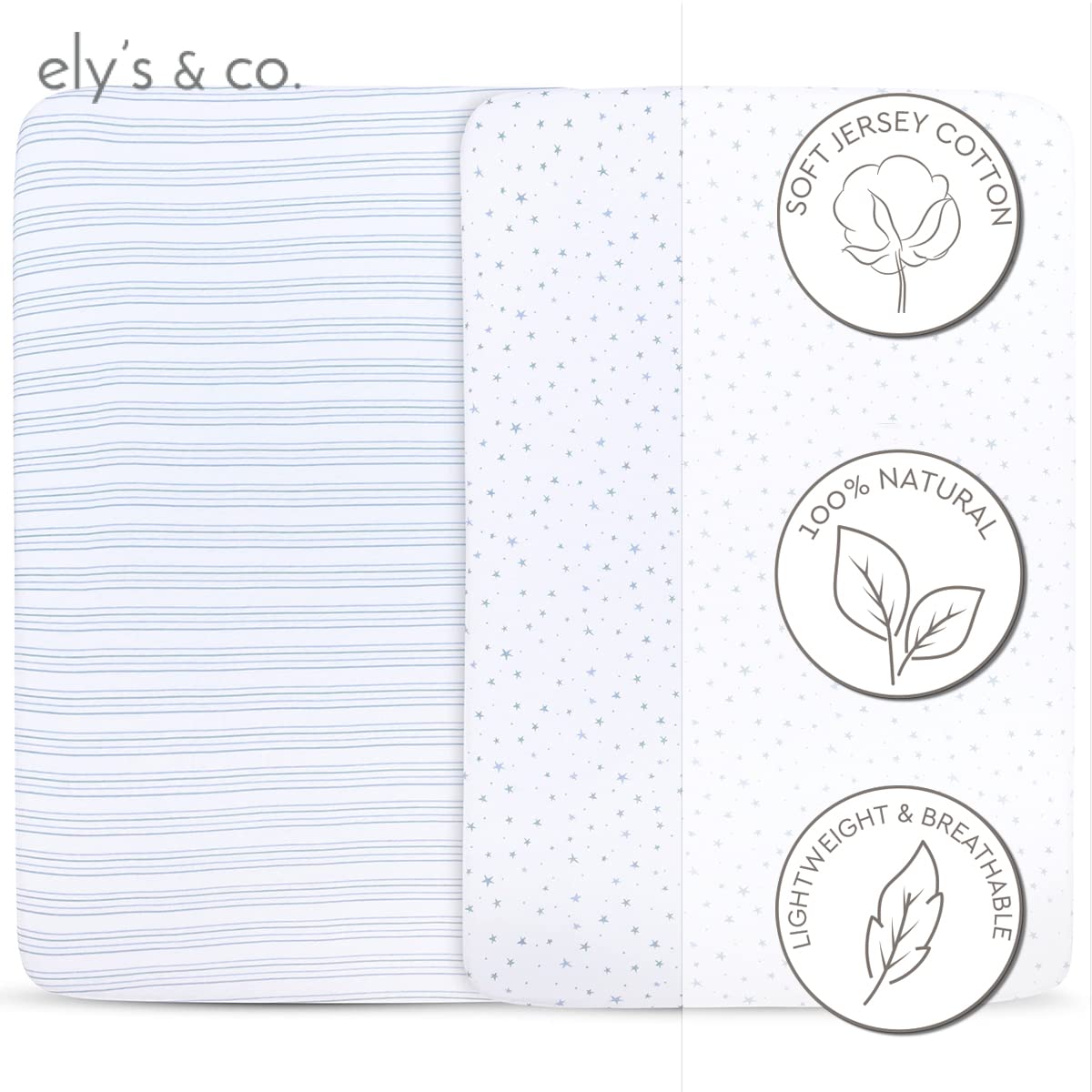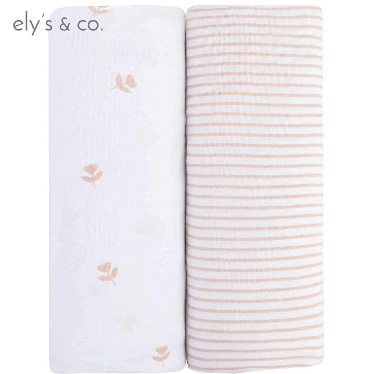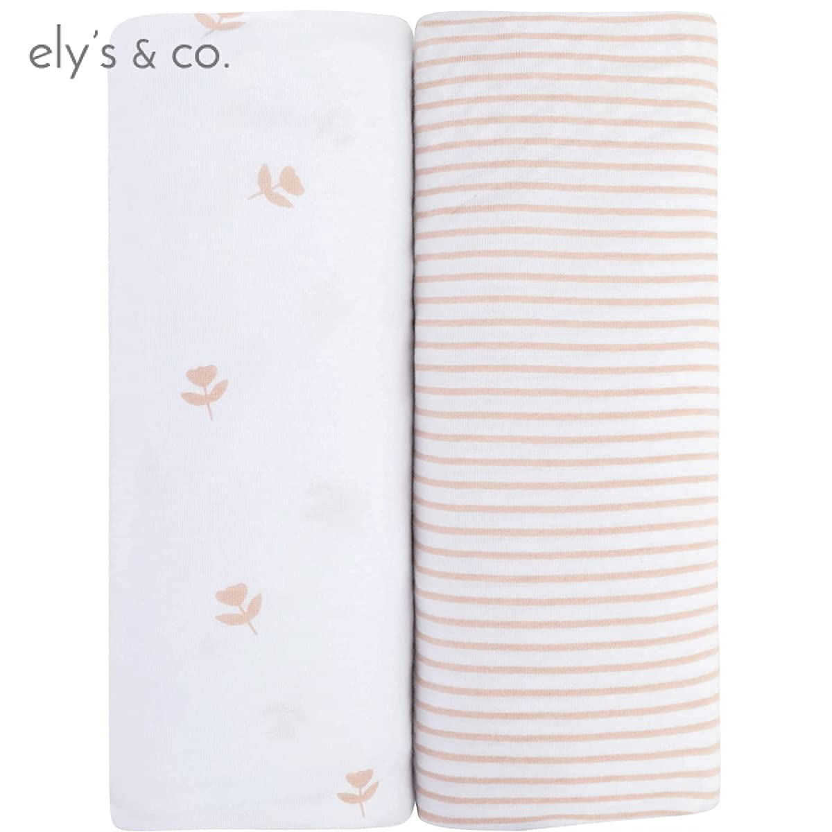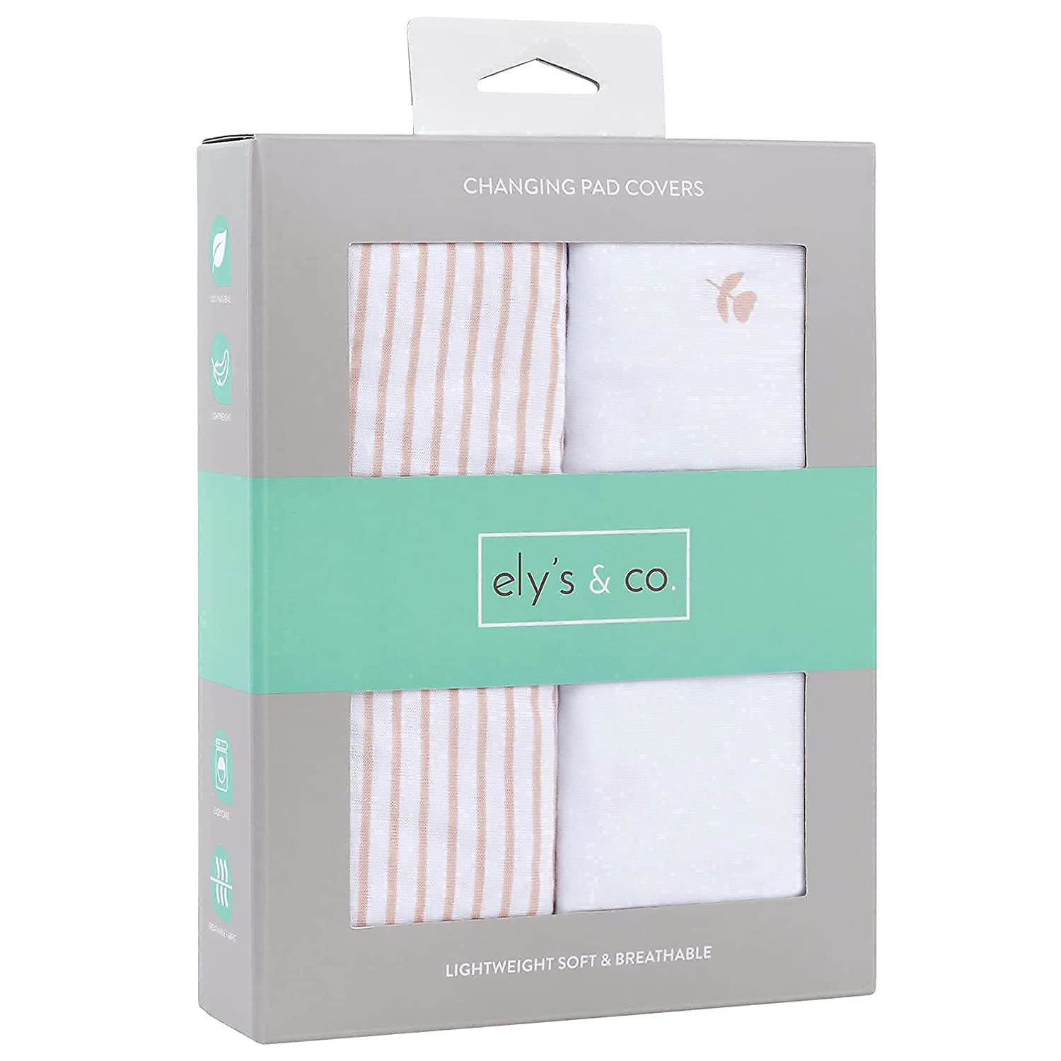 Ely's & Co. Changing Pad Cover | Cradle Sheet Set, 100% Jersey Cotton 2-Pack — Pink Tulip & Stripes