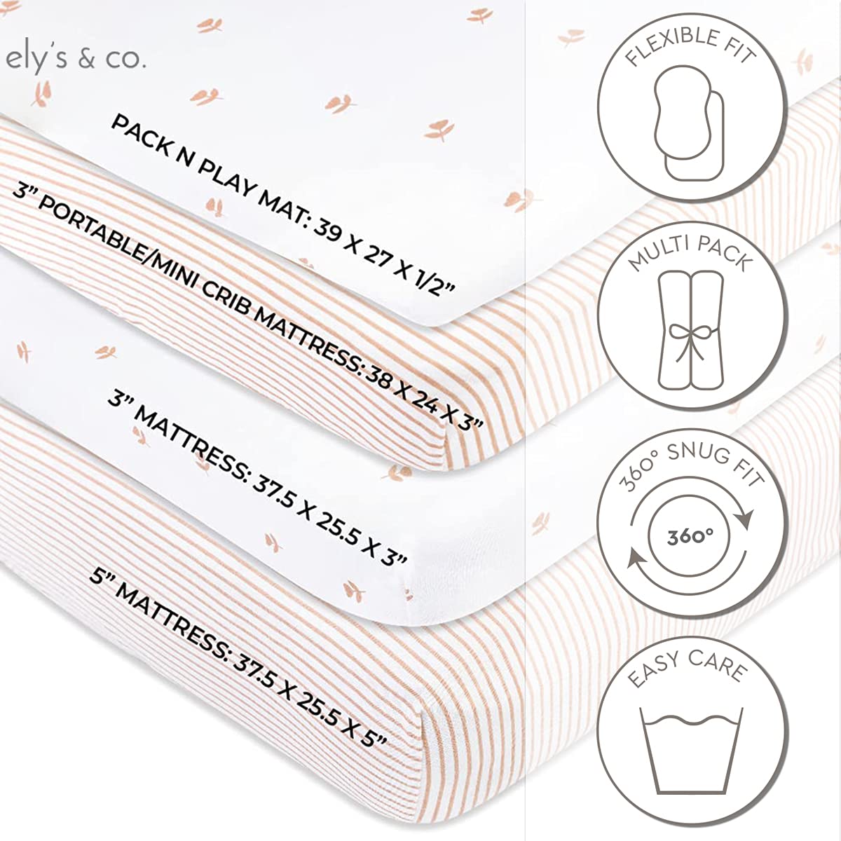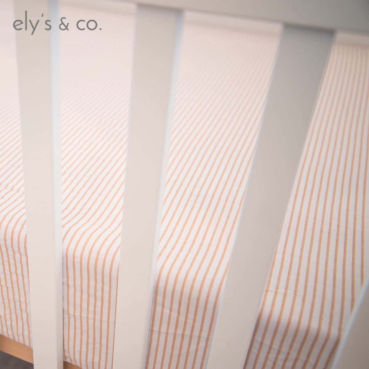 • These soft and snuggly cradle sheets feature a modern and classic pink stripe pattern and a dainty pink tulip design. We designed this fresh and feminine sheet set to complement baby girl’s nursery décor. Show us how you style this gorgeous nursery bedding set by tagging Ely’s & Co. on social media!