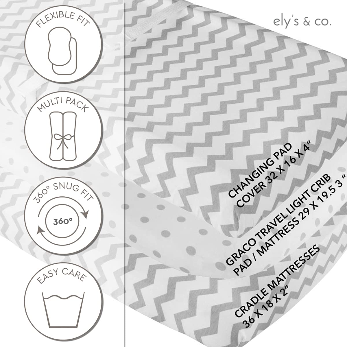 • Our changing pad covers│cradle sheets’ innovatively designed elastic band offers an adaptable stretch while supplying a safe and secure, snug fit to multiple sizes of changing pads and cradle mattresses.