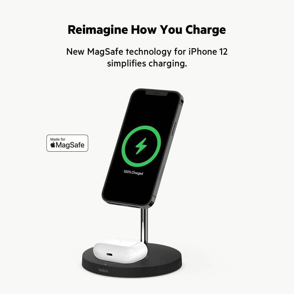 MagSafe technology is compatible with Apple iPhone 14, iPhone 13, and iPhone 12 standard, Mini, Plus, Pro and Pro Max models. This wireless charging station ensures a secure and stable connection for your MagSafe accessories, so you don't have to worry about your devices slipping off the pad. With wireless fast charging you can refuel your iPhone from 0% to 80% in 45 minutes, so you can get back to using your devices in no time.