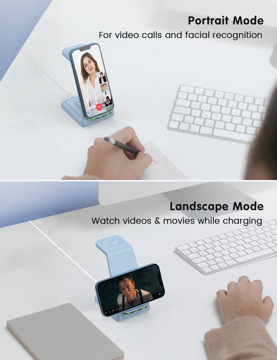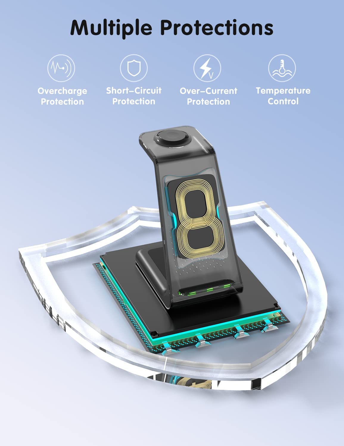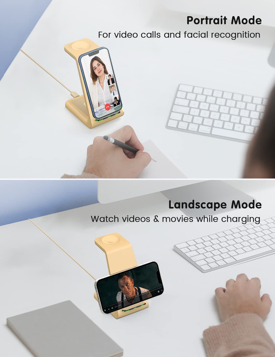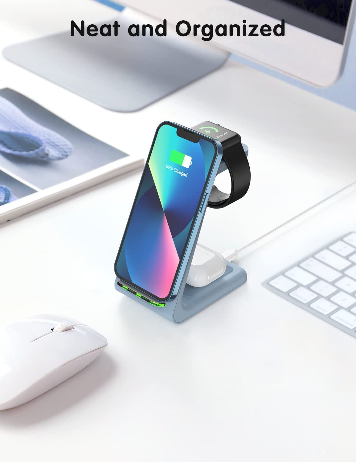 • Charging Station for Multiple Devices Apple: This JoyGeek 3 in 1 wireless charger can charge 3 devices at one time - iPhone, iWatch & AirPods by connecting one cable. Compatible phone models are iPhone 14/14 Plus/14 Pro/14 Pro Max, 13/13 Pro/13 Pro Max, 12/12 Pro/12 Pro Max, 11/11 Pro/11 Pro Max, SE/X/ XR/XS/XS Max/8/8 Plus; Compatible for Apple Watch Series 8/7/6/SE/5/4/3/2 (Not for other brands watch) and Airpods 3/ AirPods 2/ AirPods Pro (Need charge with the wireless charging case).