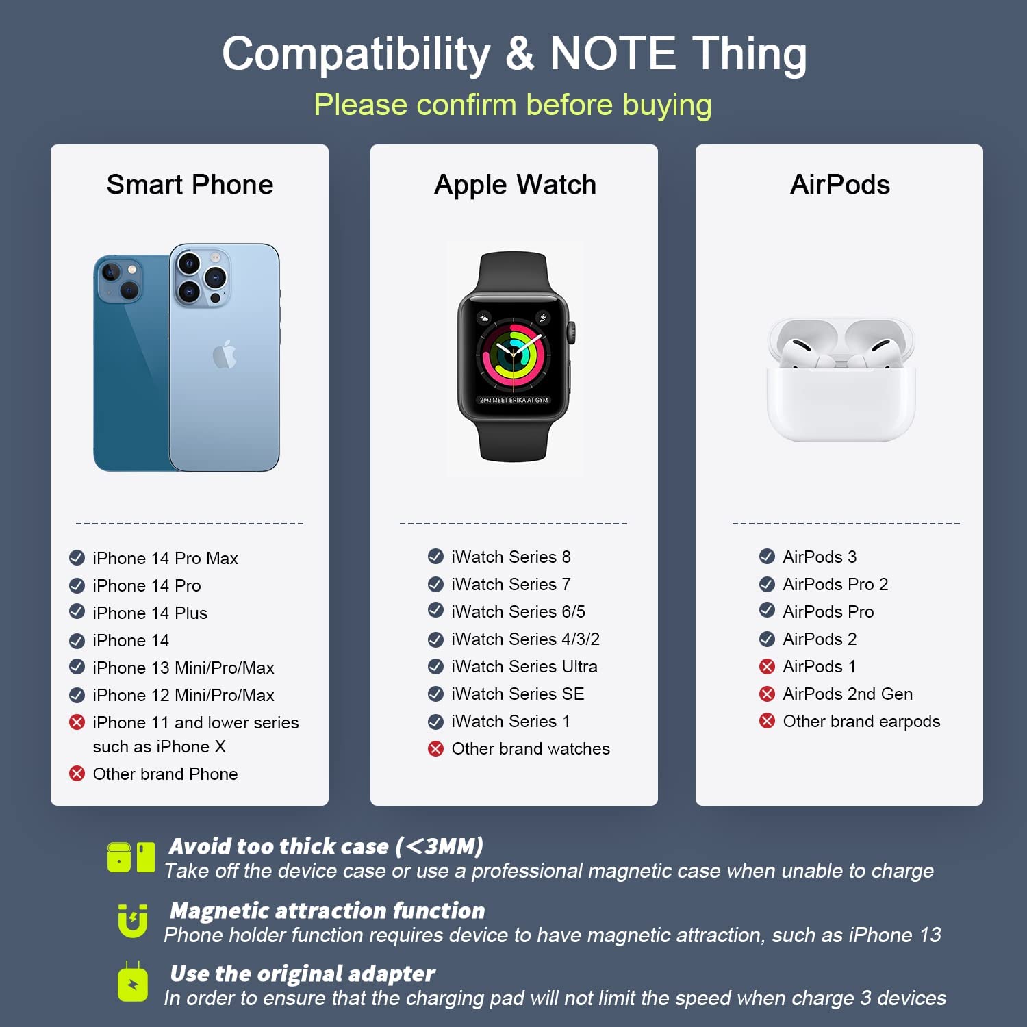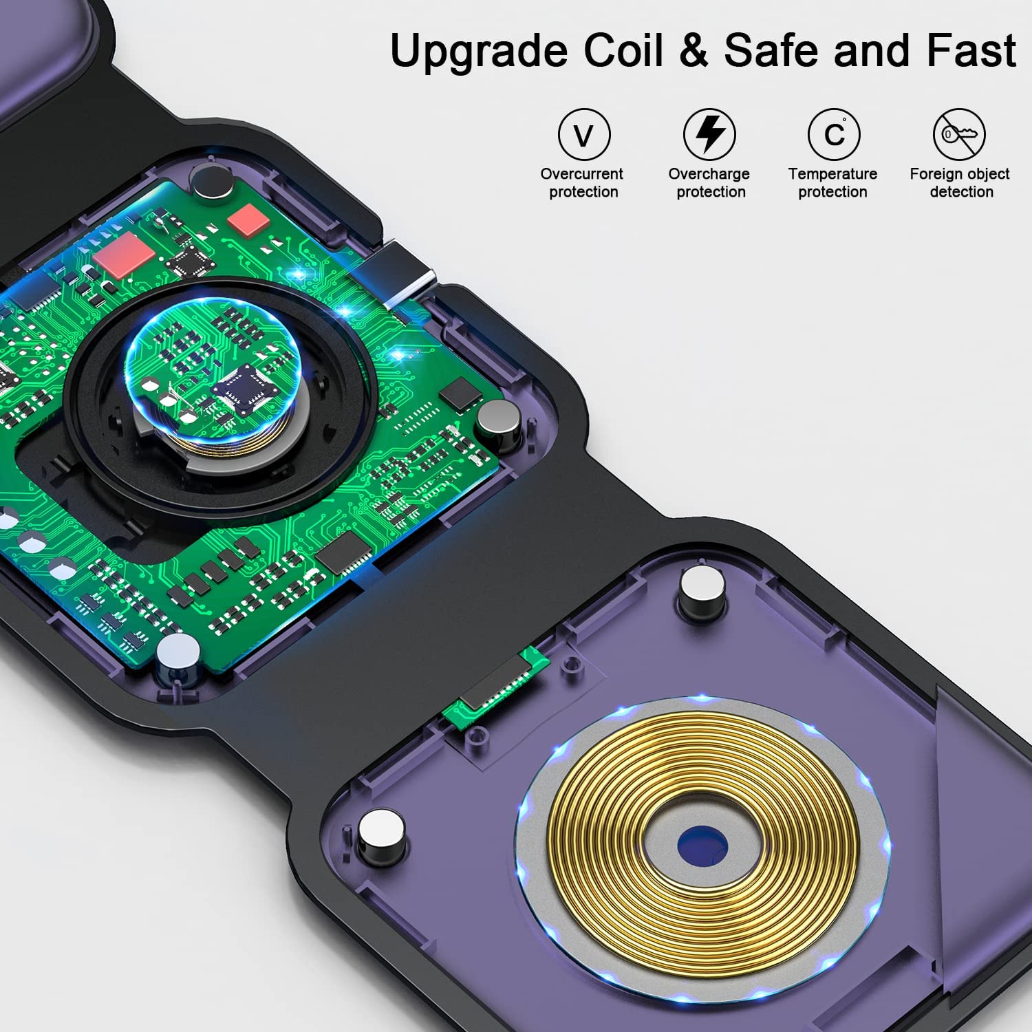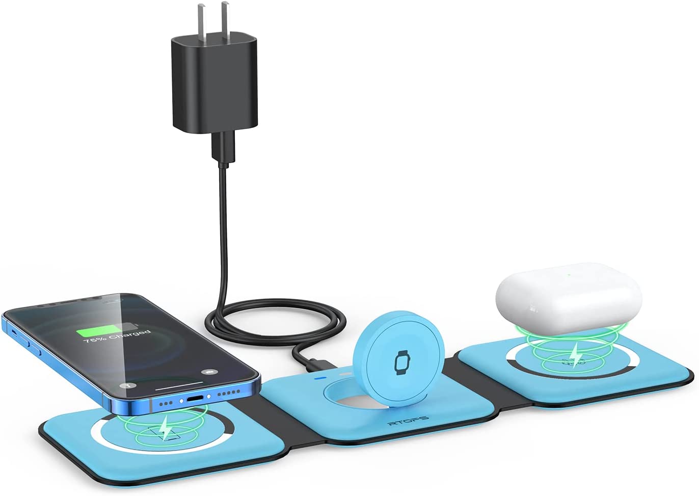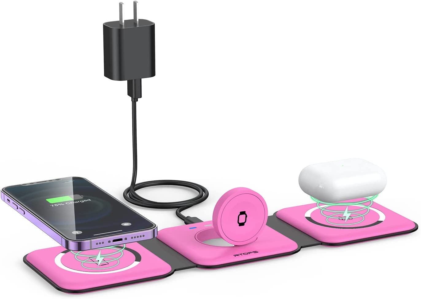• Pay Attention to Family Health: Many other phone wireless charging station do not take anti-electromagnetic measures, and internal radiation will spread, causing harm to the human body. This folding charger uses a professional magnetic isolation sheet inside, no radiation leakage, the elderly and children can use it with no worry. This wireless charging station for apple products strive to protect the safety of you and your family.
