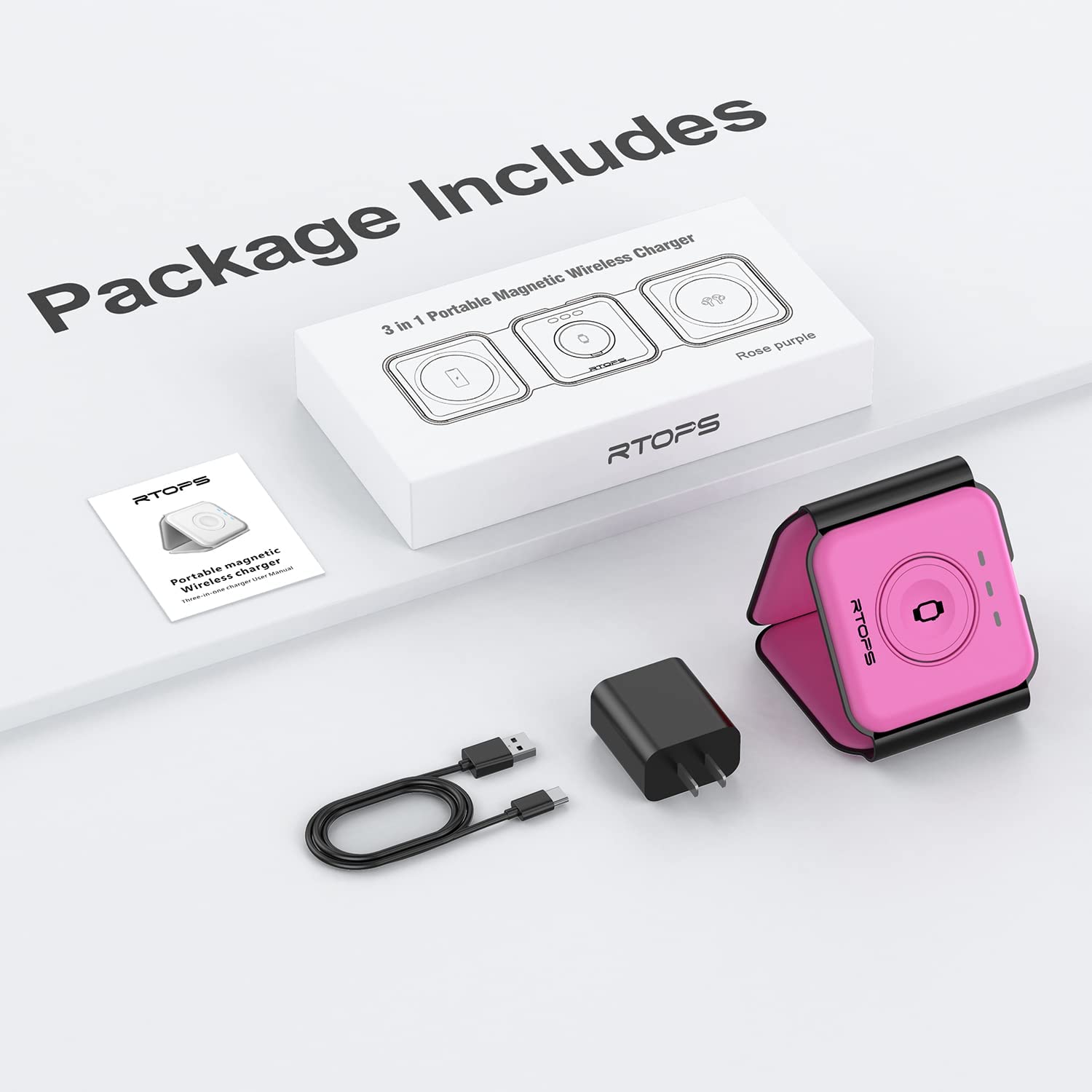 • Re-evolution of Wireless Charger: This specially designed wireless charger pad combines the advantages of all other wireless chargers and has developed into an excellent work - 1. Can chat vertically 2. Watch drama horizontally 3. It even has a magnetic attraction function 4. At most charge 3 devices at the same time 5. Free charge adapter and cable 6. Apple-style minimalist design. A phone wireless charger of RTOPS meets all requirements of you and is worth taking home.