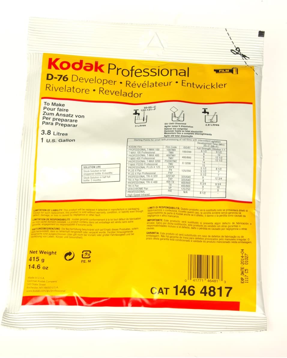 For general-purpose use with films such as Kodak T-MAX Professional, PLUS-X Pan, and TRI-X Pan Films; also for some spectroscopic films and plates. A favorite of pictorial photographers.Yields full emulsion speed and maximum shadow detail with normal contrast. Moderately fine grain, excellent development latitude.For use in: small and large tanks, trays, rotary-tubes, rack-and-tanks Keeping Properties:Stock solution (full strength ) in closed container (full) - 6 months; 2 months in a half full container Working solution (full strength) in a tray-24 hours (or tank-1 month) Diluted 1:1 solution-24 hours in a tray (N/A for a tank) Useful Capacity (unreplenished):Full strength in a tray; 16-8x10 sheets per gal (4 per L) Full strength in a tank; 16-8x10 sheets per gal (4 per L); useful capacity can be increased by replenishmentDiluted 1:1 in a tray; 8-8x10 sheets per gal in a tray (2 per L) Diluted 1:1 in a tank; 8-8x10 sheets per gal in a tank (2 per L)