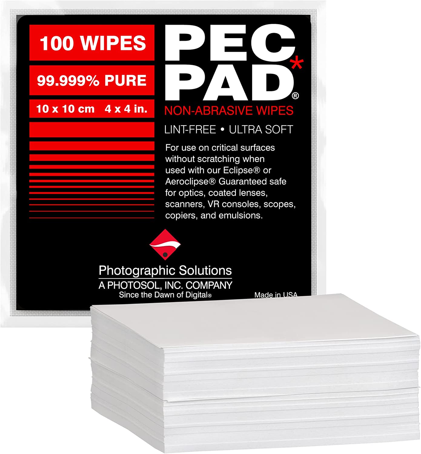 PEC-12 Photographic Emulsion Cleaner Kit and PEC-PAD Lint Free Non-Abrasive Wipes 4"x4" 100 Sheets per/Pkg - for Cleaning Film, Photo Negative, B&W Slide - Dropper Tip (59ml) 2oz