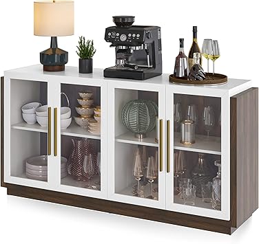 BELLEZE Sideboard Buffet Cabinet, Modern Wood Glass-Buffet-Sideboard with Storage, Console Table for Kitchen, Dining Room, Living Room, Hallway, or Entrance - Brixston (White)