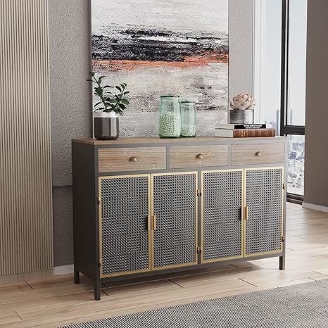 Buffet Sideboard Cabinet, 48" Wide 4 Doors Sideboard with 3 Top Drawers, Farmhouse Entryway Buffet Cabinet Accent Cabinet for Living Room Office Bedroom