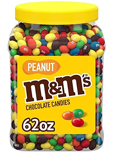 Add delicious, colorful fun to everyday celebrations with M&M'S Peanut Chocolate Candy Jars. This 62-ounce bulk resealable candy jar full of peanut chocolate candy is a must for your pantry list. Enjoy roasted peanuts covered in delicious milk chocolate and a colorful candy shell. Packaged in a resealable jar to keep the fun contained, this bulk candy jar is ideal for keeping the pantry stocked for movie night with the family and small celebrations with friends. These colorful chocolate candies make great to-go treats; pack them in lunches or take them along on family road trips to enjoy peanut chocolate candy on the road. Mix the perfect trail mix with Peanut M&M'S candy for a nutty, chocolate crunch to take along on hikes and outdoor activities. Decorate cookies and brownies with these bite-size candy pieces, M&M'S Peanut Chocolate Candy make great additions to all your sweet treats. This bulk chocolate jar is a tasty way to share your love of peanuts and chocolate with friends and family. The pantry-size jar is also great for stocking candy buffet tables and filling the office candy dish to enjoy a midday chocolate candy pick-me-up. A little bit nutty and a whole lot tasty, celebrate everyday moments with the delicious, colorful fun of M&M'S Peanut Chocolate Candy.