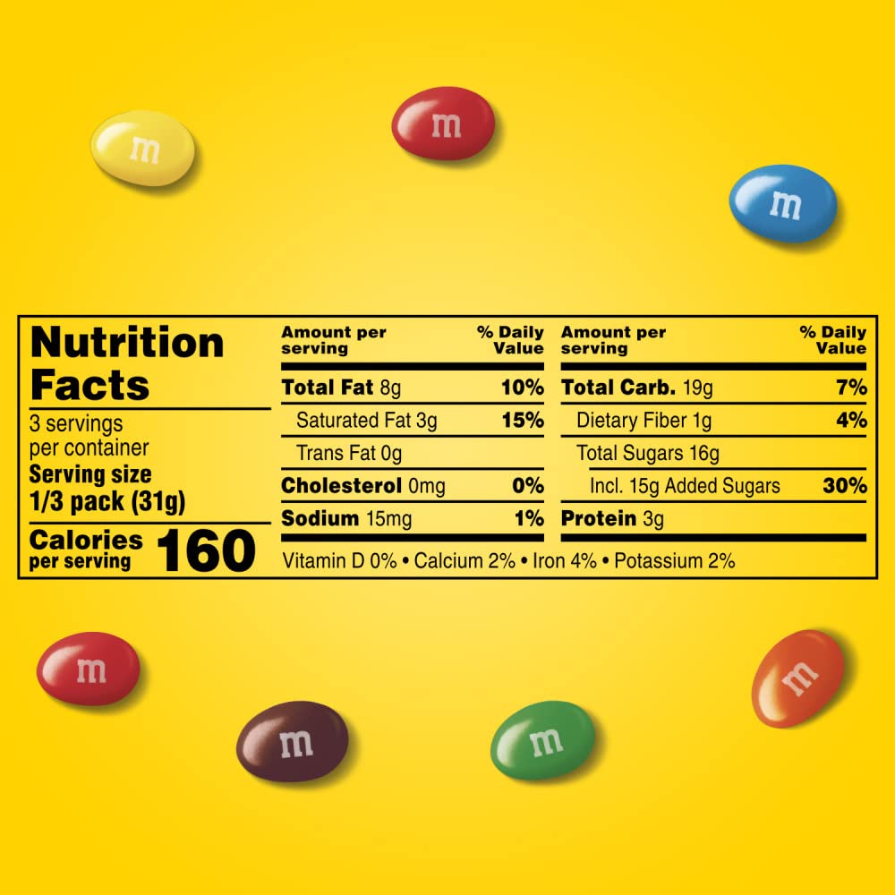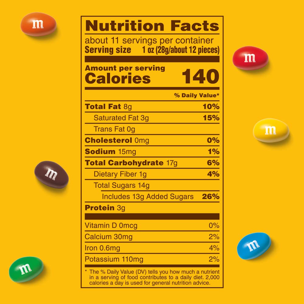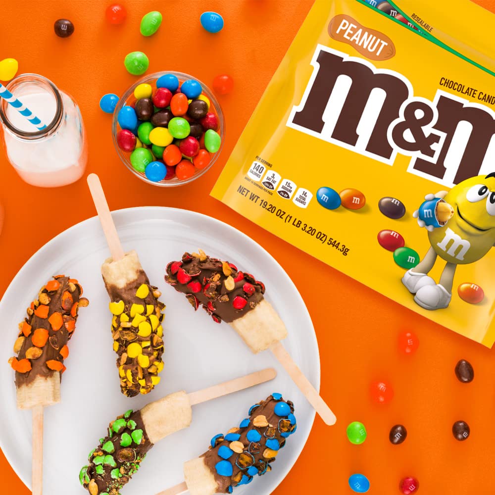 • Bulk box of full size M&M'S Peanut Chocolate Candy Share M&M'S Peanut Chocolate Candy bags with friends or coworkers to add colorful fun to their day.