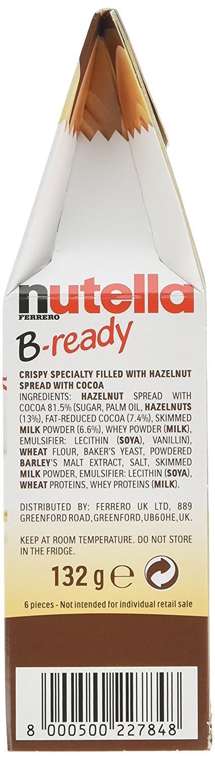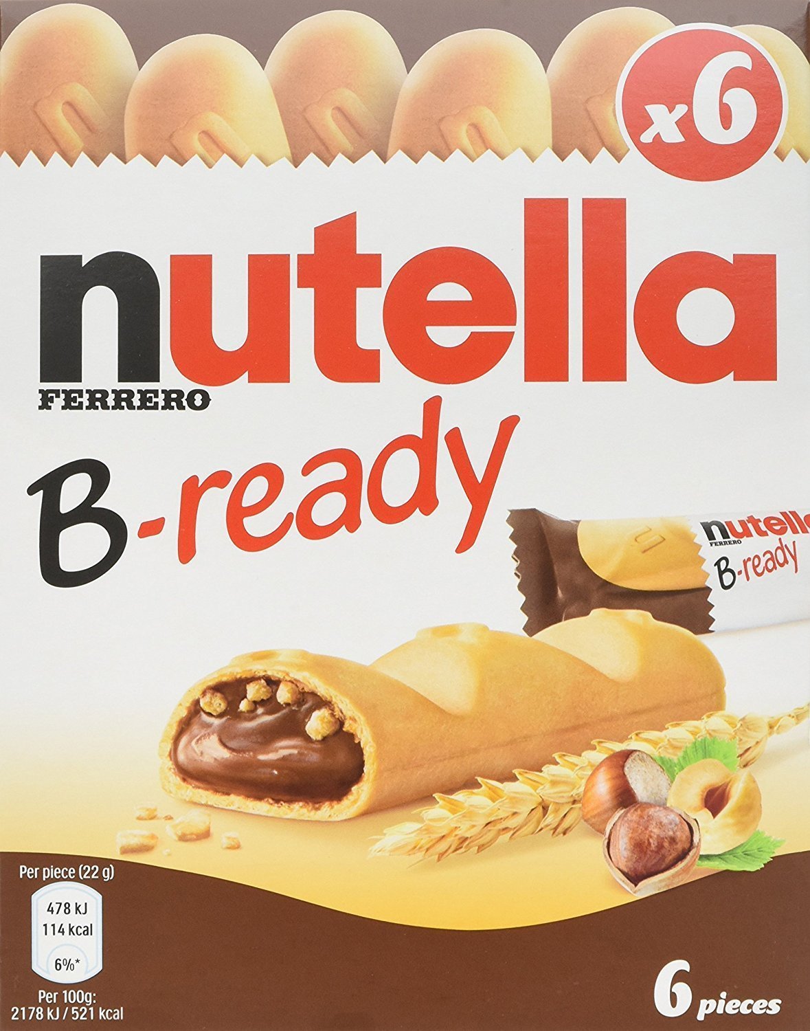 On the occasion of the 50th birthday of Nutella , Ferrero has launched a few days ago Nutella bready , a big cookie that marketing experts describe as " a crisp wafer of bread in the form of mini - baguette stuffed with a creamy Nutella " .