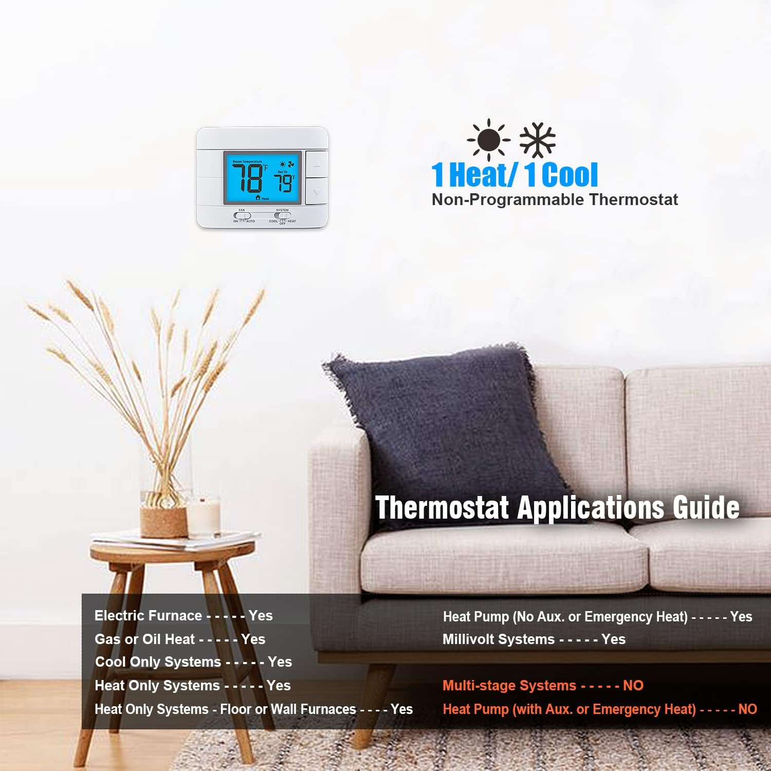 • Enjoy a comfortable living environment with our single-stage thermostats for home heat and ac, perfect for maintaining the ideal temperature in your home all year round.