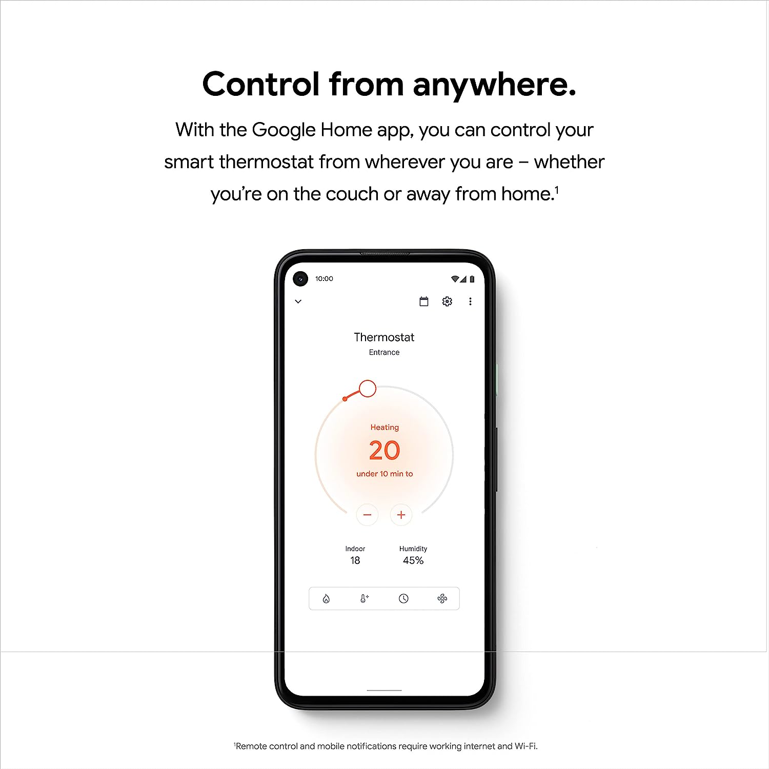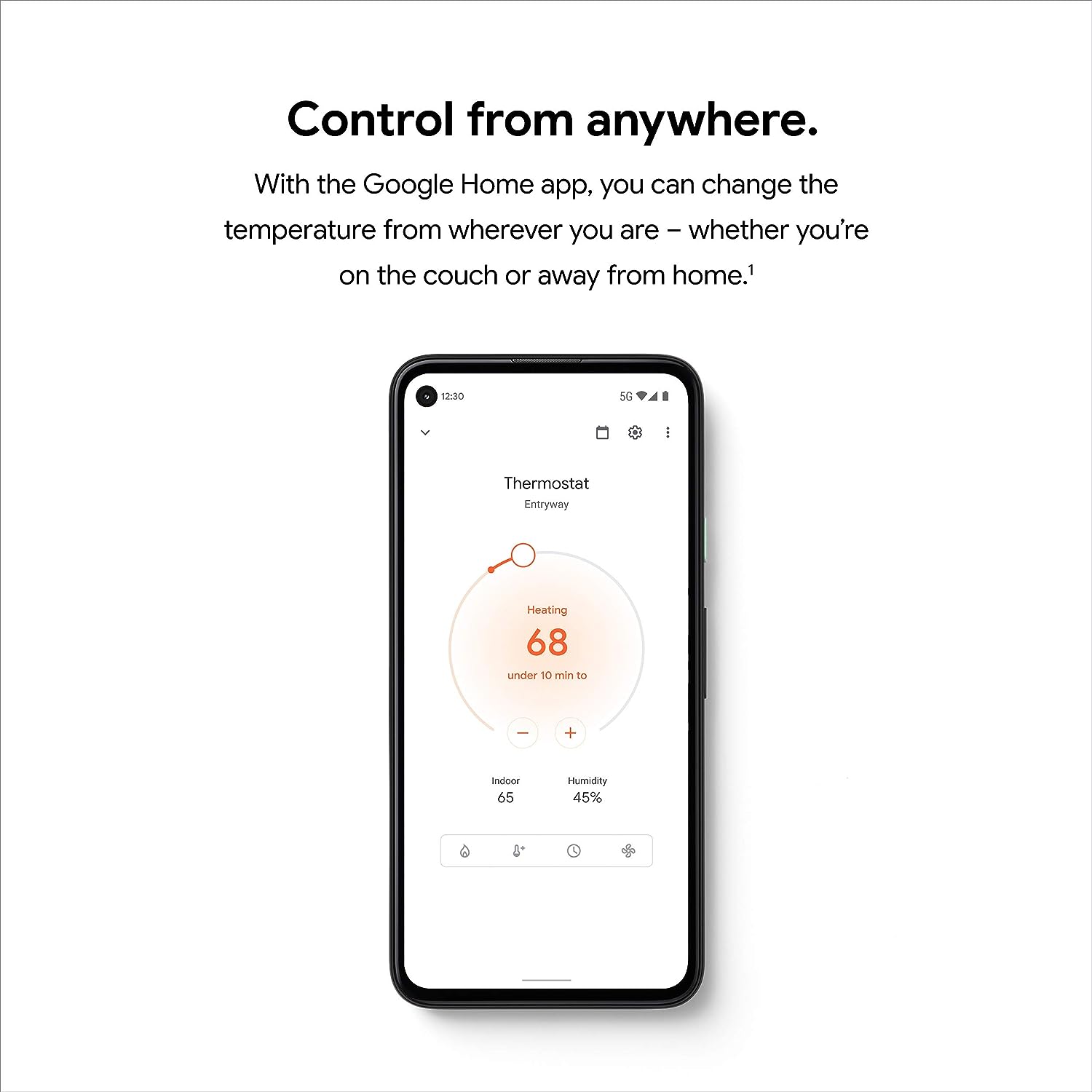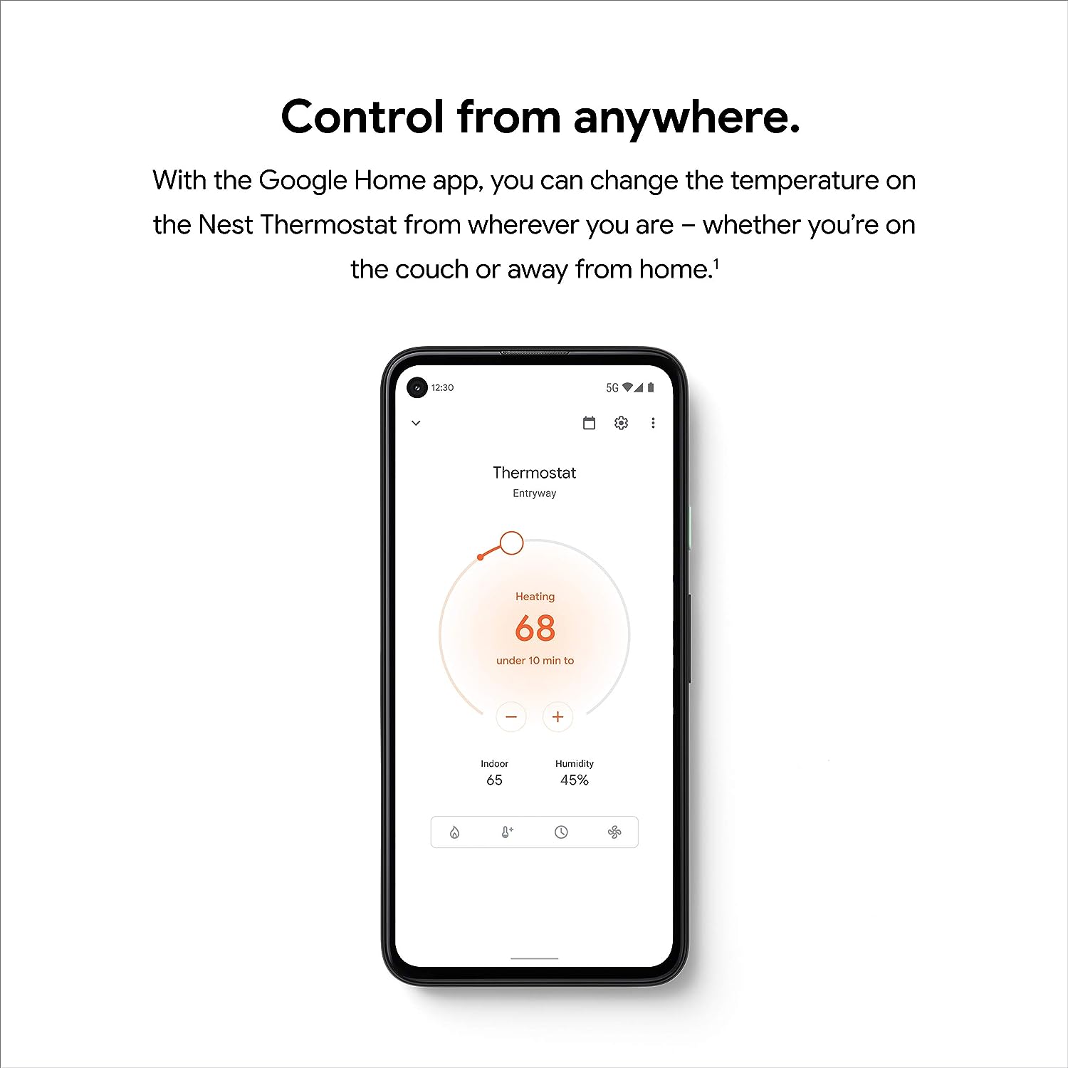 Meet the Google Nest Thermostat, the smart thermostat for home with a cozy price. It can turn itself down to save energy when you leave the house. You can control this programmable thermostat from anywhere with the Google Home app – whether you’re on an errand or in bed.[1] And it’s simple to install yourself, usually in 30 minutes or less. [1] Remote control and mobile notifications require working internet and Wi-Fi. [2] Alerts can notify you of a potential issue with eligible HVAC systems. They’re meant to provide helpful information, not an endorsement, representation, or warranty of any kind about the health of your HVAC system. Alerts aren’t intended to replace a diagnosis by a qualified HVAC professional. [3] Voice control requires a compatible device, and working internet and Wi-Fi. [4] ENERGY STAR and the ENERGY STAR mark are registered trademarks owned by the U.S. Environmental Protection Agency. [5]Nest Renew requires 3rd generation Nest Learning Thermostat, Nest Thermostat E, or the newest Nest Thermostat (sold separately), connected to a Google account. Only available in areas served by major continental US grids. Only available for customers on certain electric utility time-of-use rates. Learn more at support.google.com/googlenest/answer/11156316. [6]Adjustments only shift electricity usage from your heating and cooling.